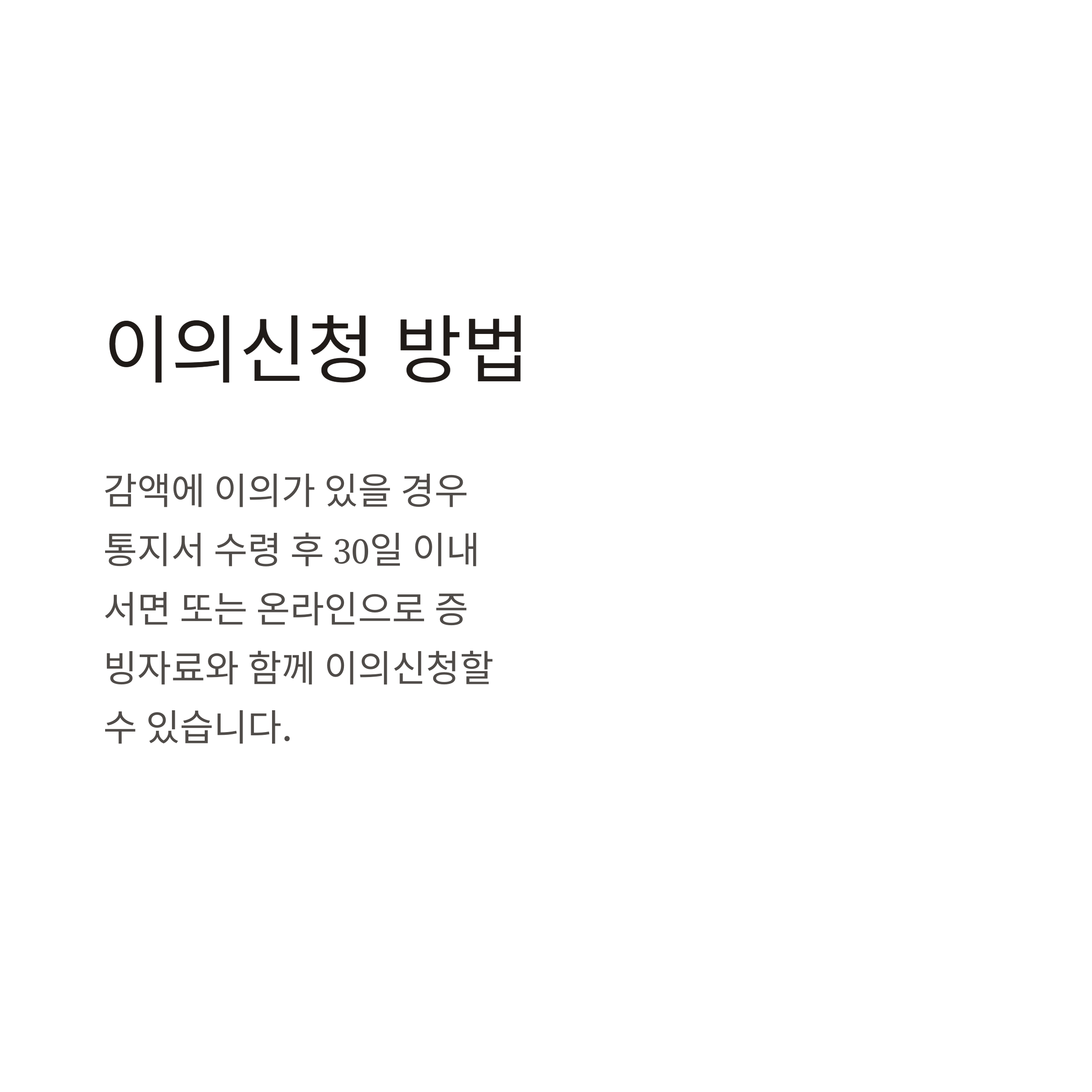 - 감액 통지서 수령 후 30일 이내 이의신청 가능