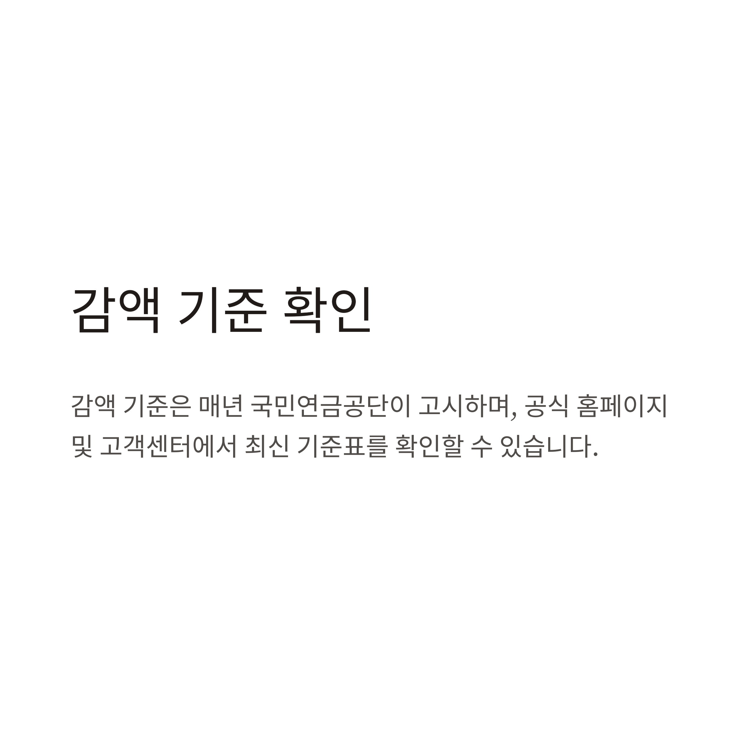 이 기준은 국민연금공단에서 매년 고시하며, 해당 기준은 국민연금공단 홈페이지에서 확인 가능합니다. 아래 링크에서 공식 기준을 꼭 참고해 주세요. 국민연금공단 공식 감액 기준 보기