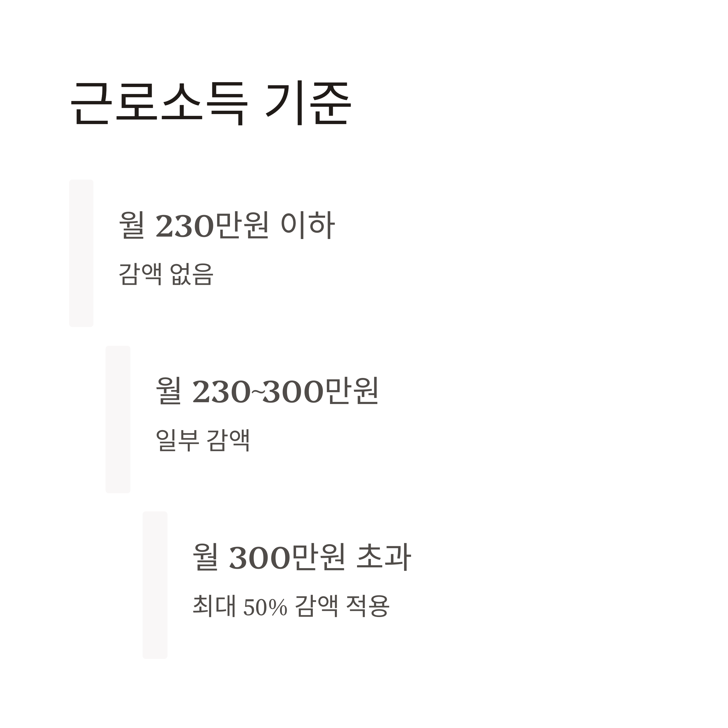 | 소득액 구간 (월) | 감액 비율 | 비고 |