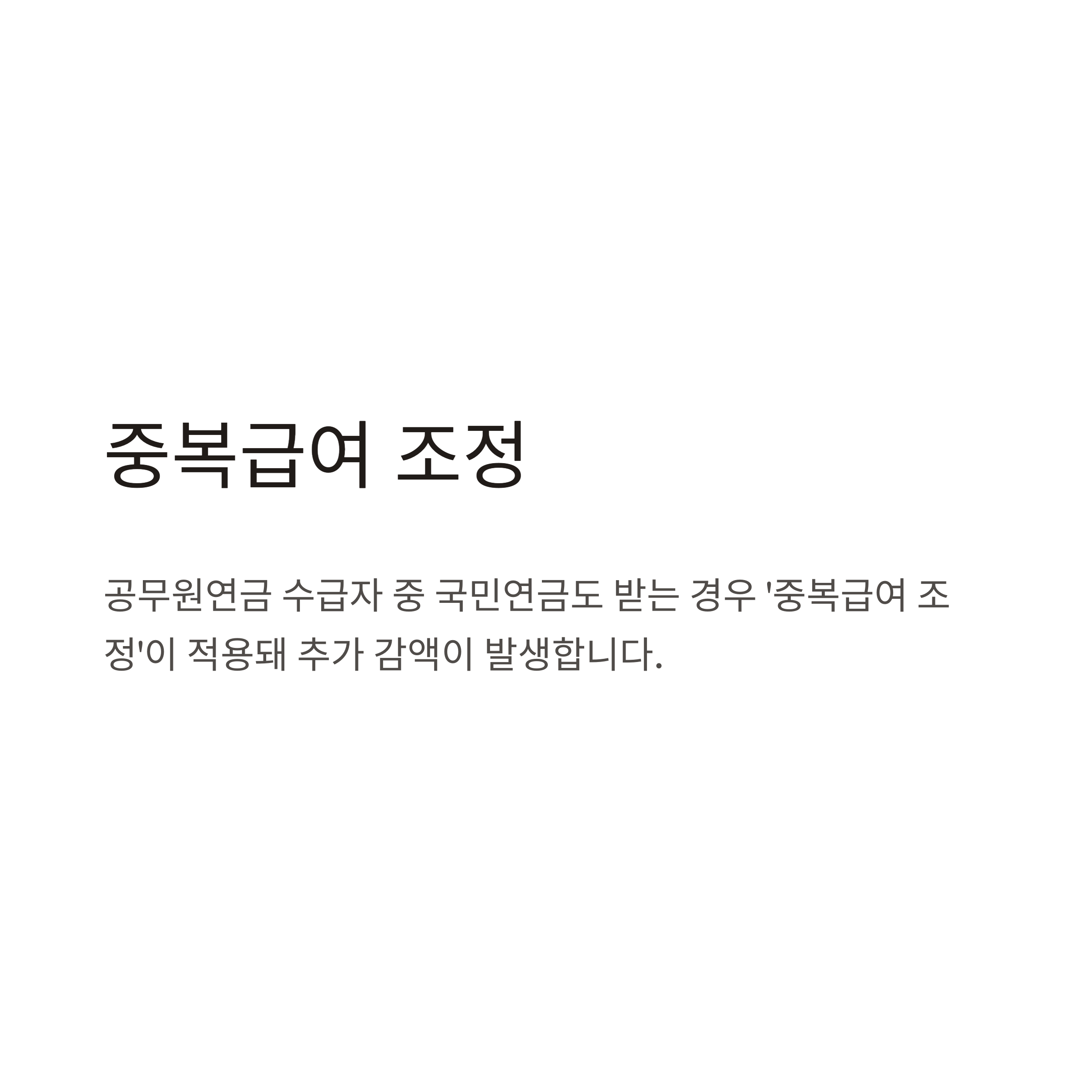 - 공무원연금 + 국민연금 수령 시: 중복 연계 감액 적용
