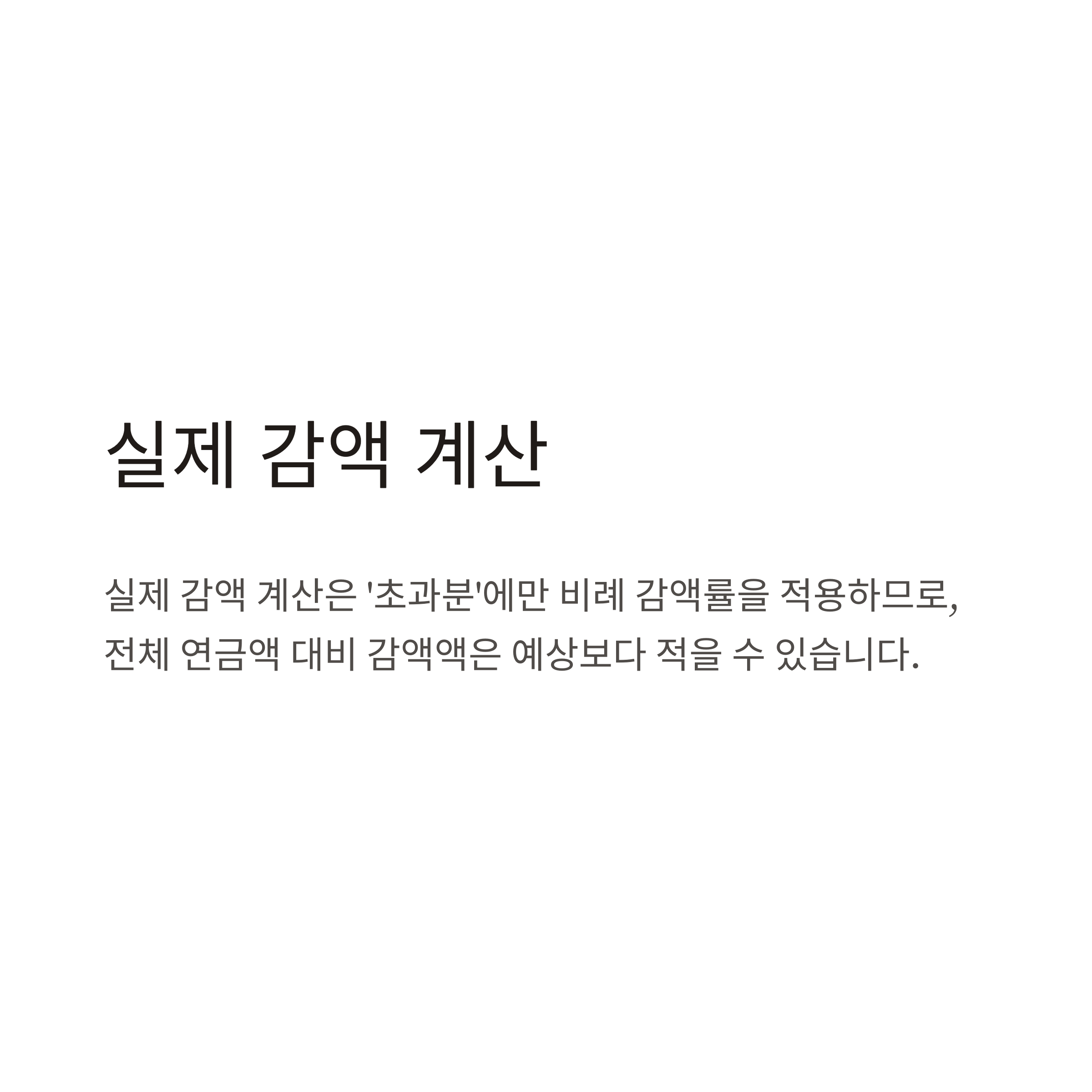 - 국민연금만 수령 시: 일반 감액 기준 적용
