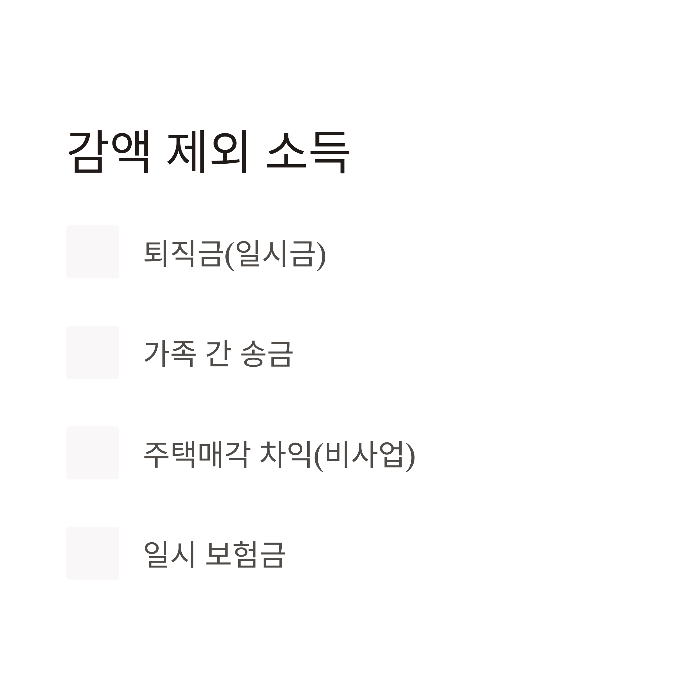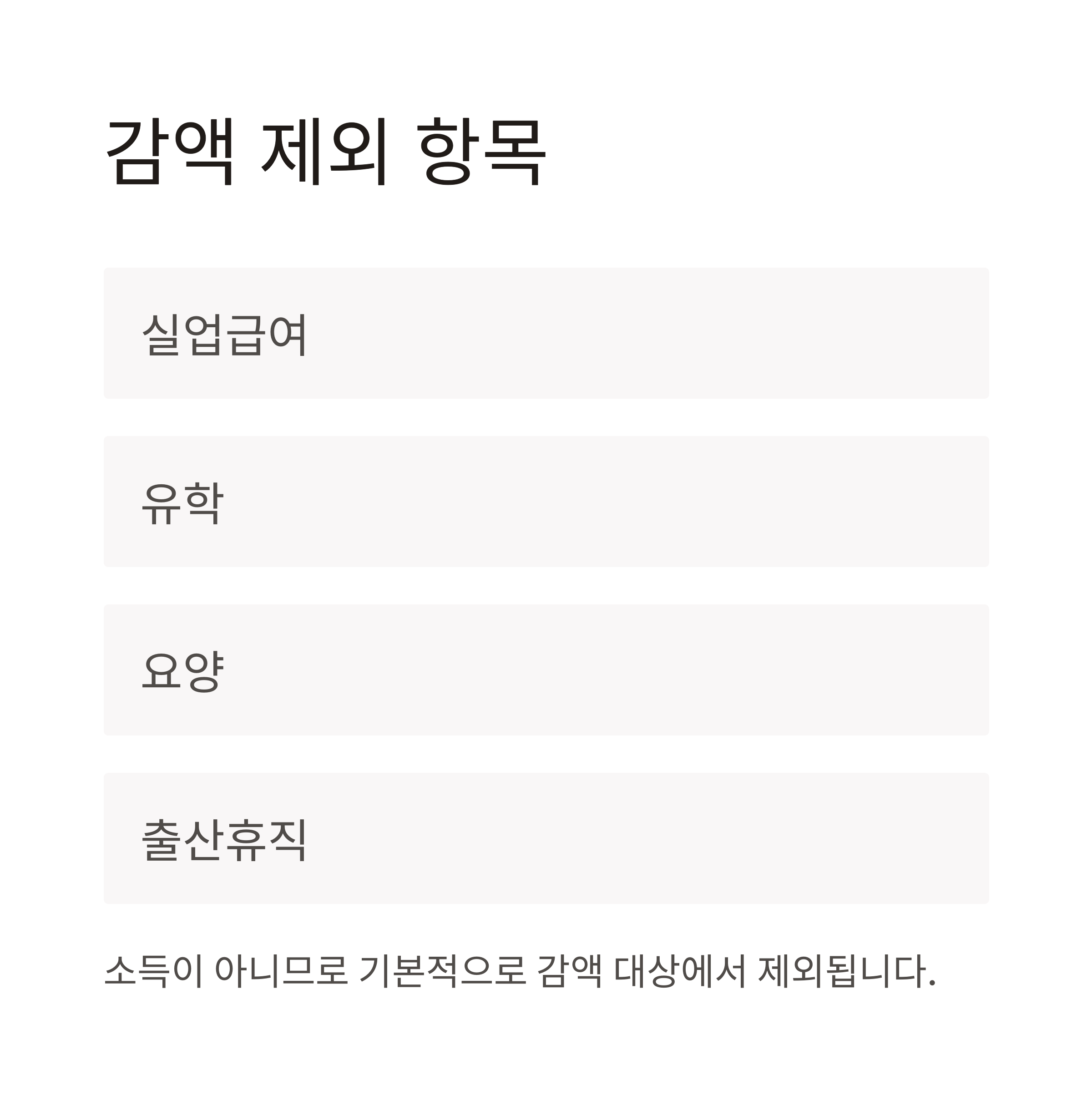 예를 들어 아래와 같은 수입은 감액 기준에서 제외됩니다: