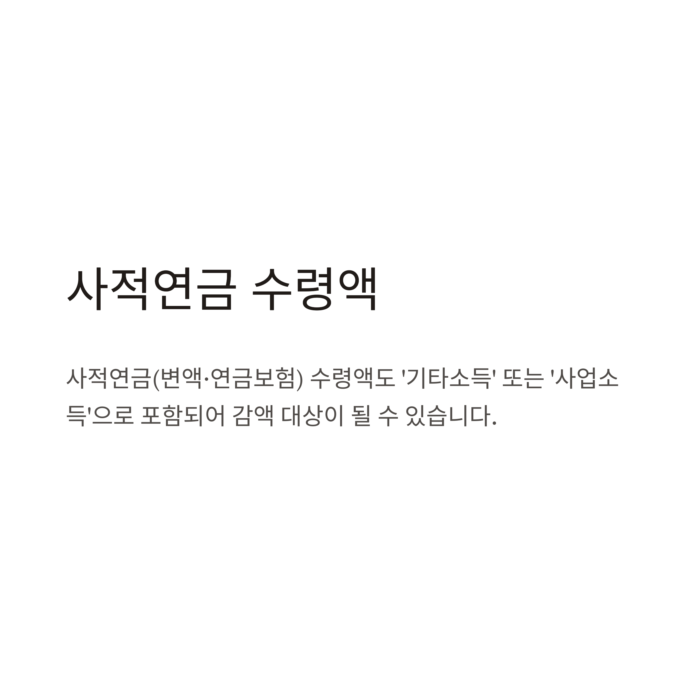 - 연금 외 사적소득 – 사적연금, 퇴직금 일부, 변액보험 수령액 등