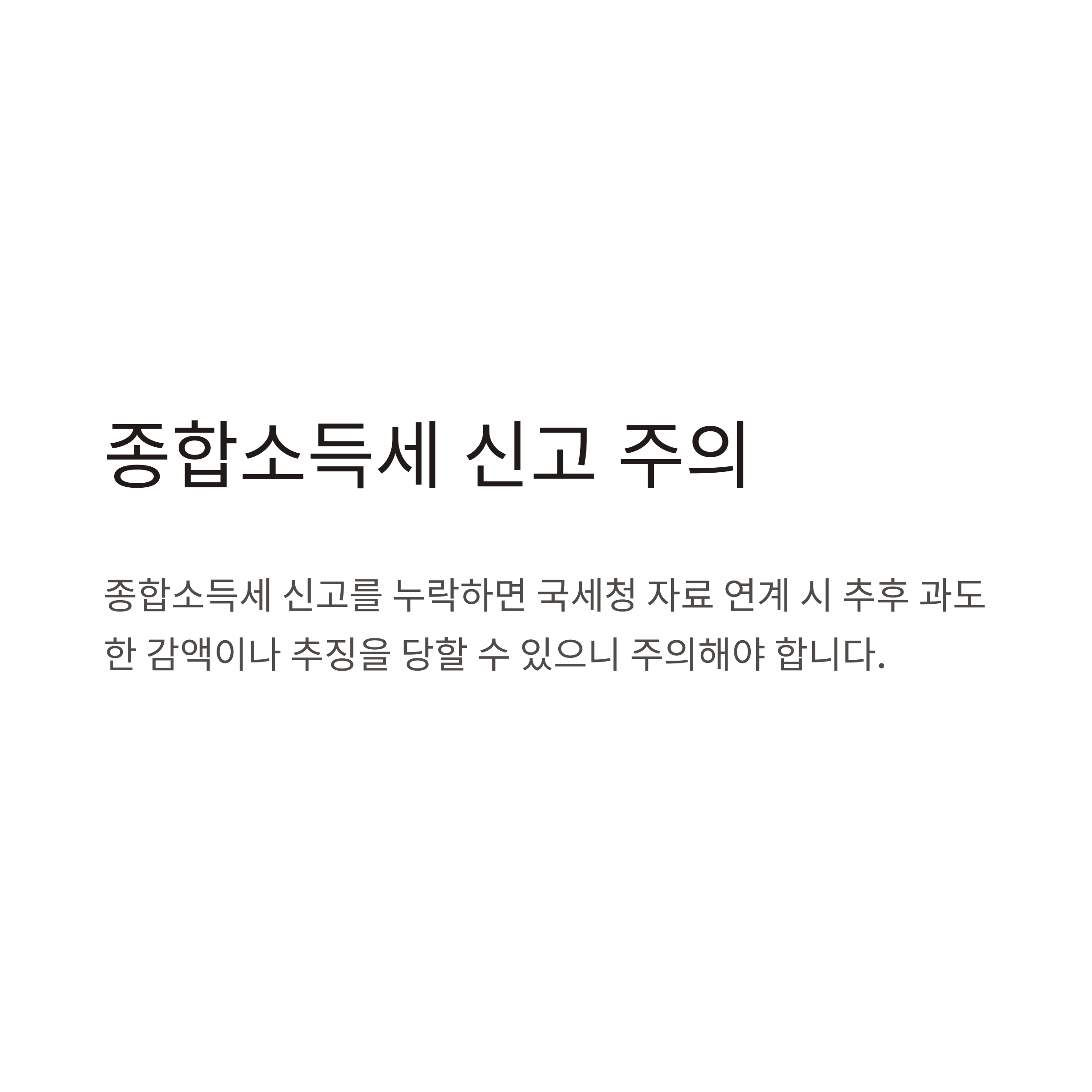 따라서 기타소득이 있는 분들은 미리 예측하여 감액 여부를 확인하고, 필요시 소득 분산도 전략적으로 고려하시는 게 좋습니다. 종합소득 기준 정책 안내