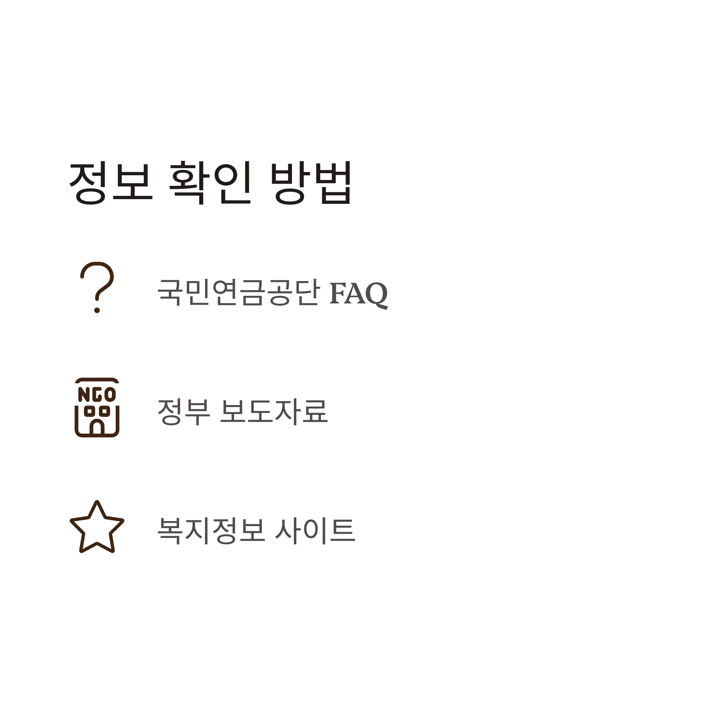이러한 항목들은 국민연금 감액 기준에서 제외되는 경우가 많으며, 혹시 애매한 소득이라면 공단에 질의해보는 것이 안전합니다. 국민연금 고객센터 바로가기