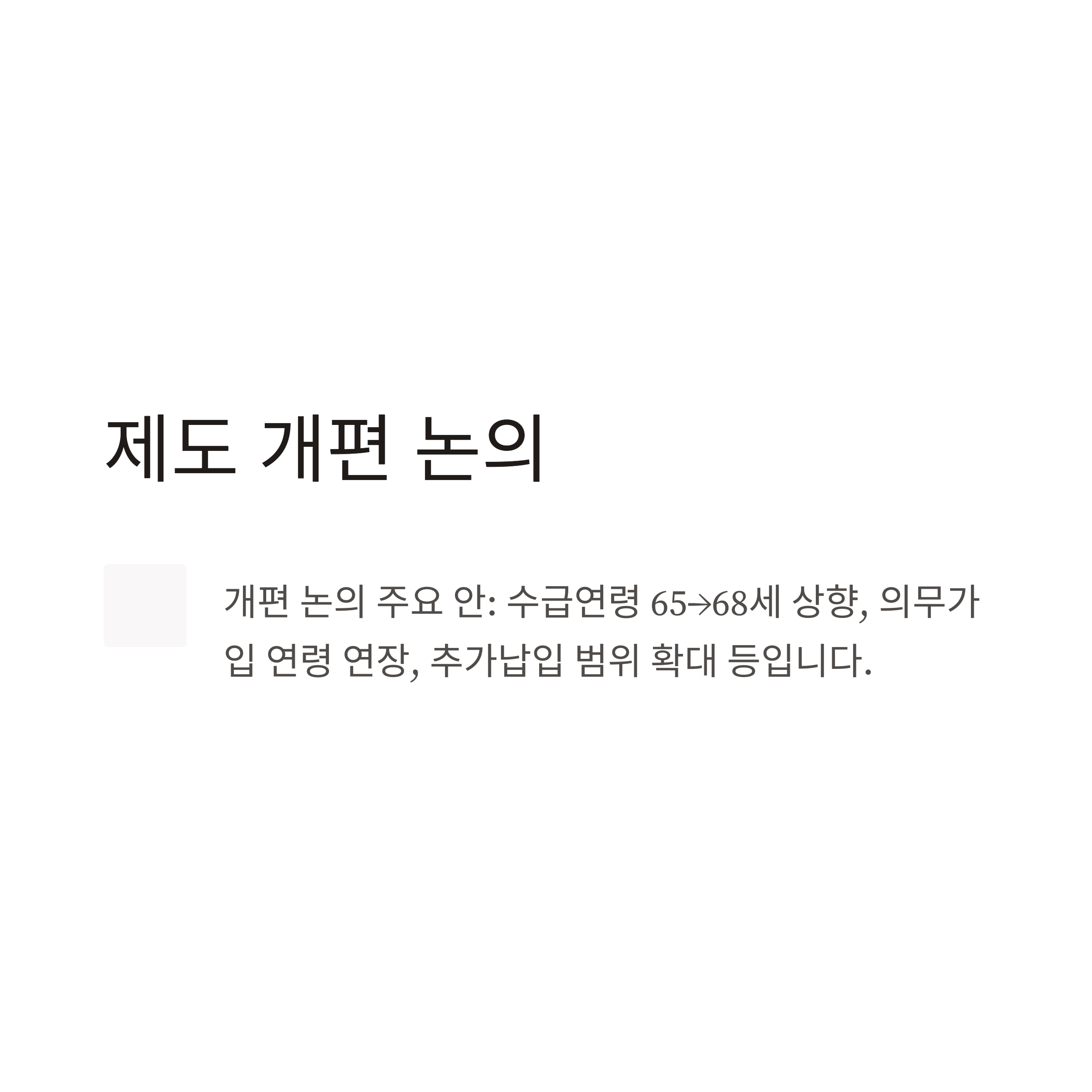 제가 느낀 바로는, 꾸준히 납부한 사람일수록 불리한 구조가 되지 않도록 정책적 설계가 필요하다는 점입니다. 아래는 최근 논의되고 있는 주요 개편안입니다: