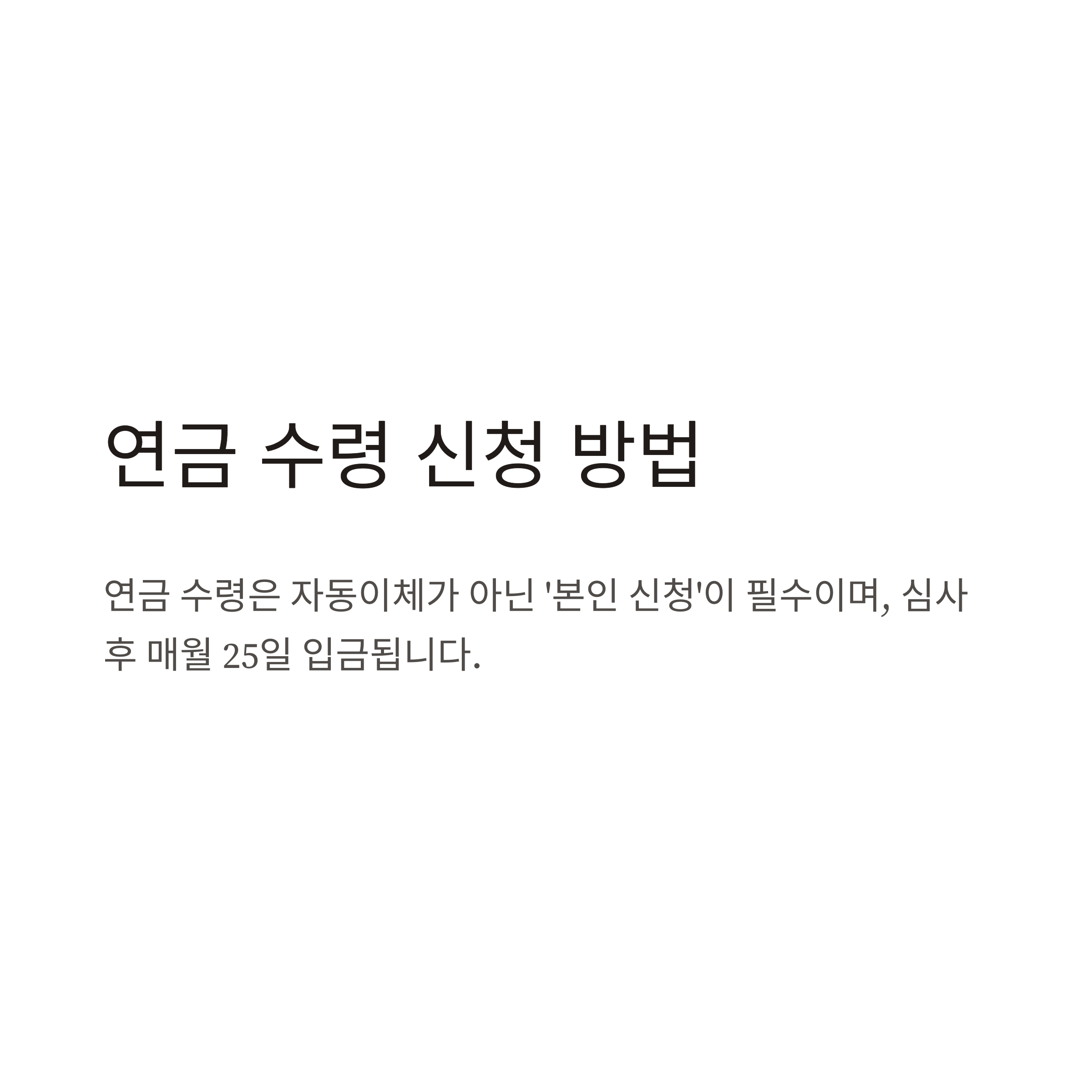| 신청 필요 여부 | 연금 수령은 본인 신청 필수 |