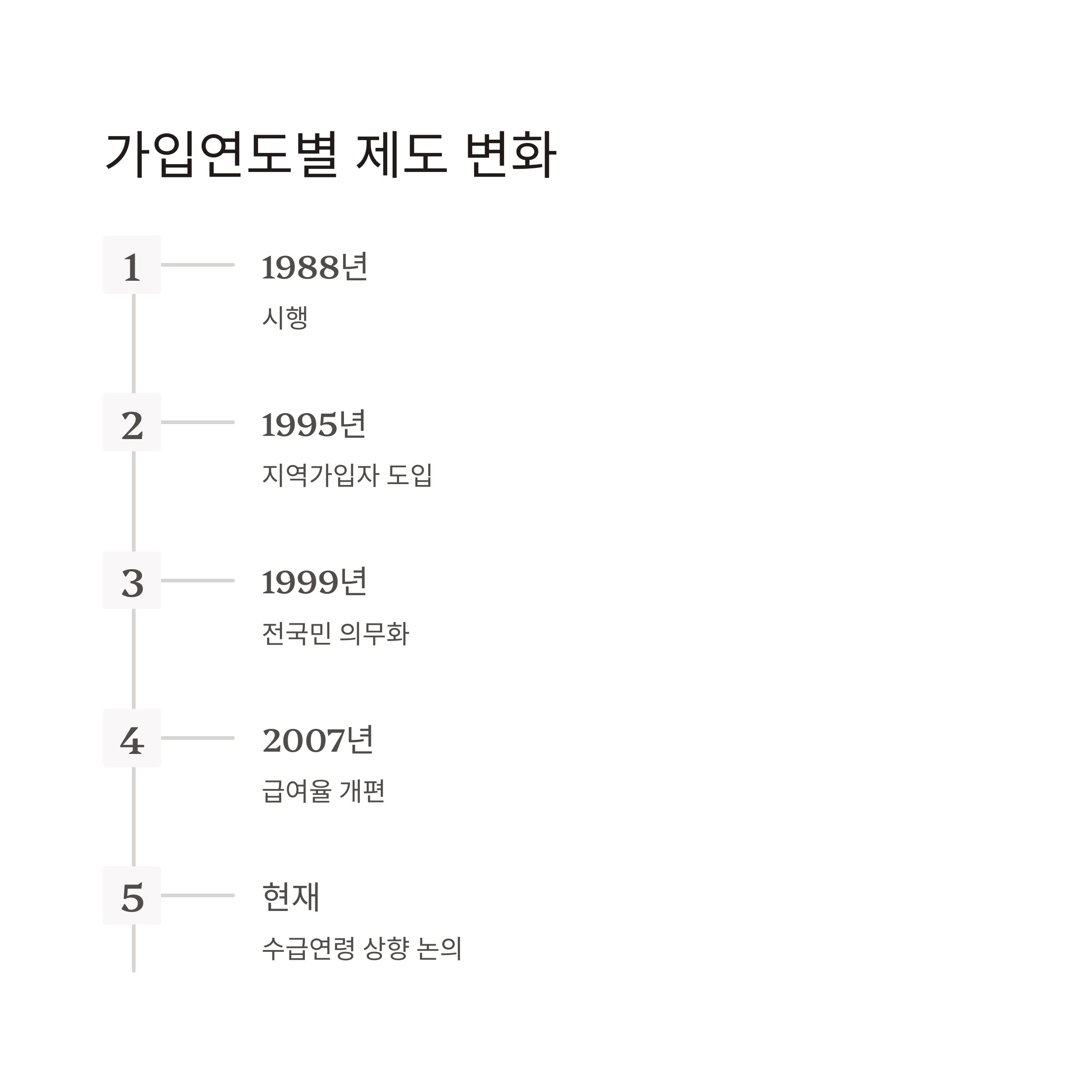 | 1999년 | 전국민 의무가입 체계 도입 |