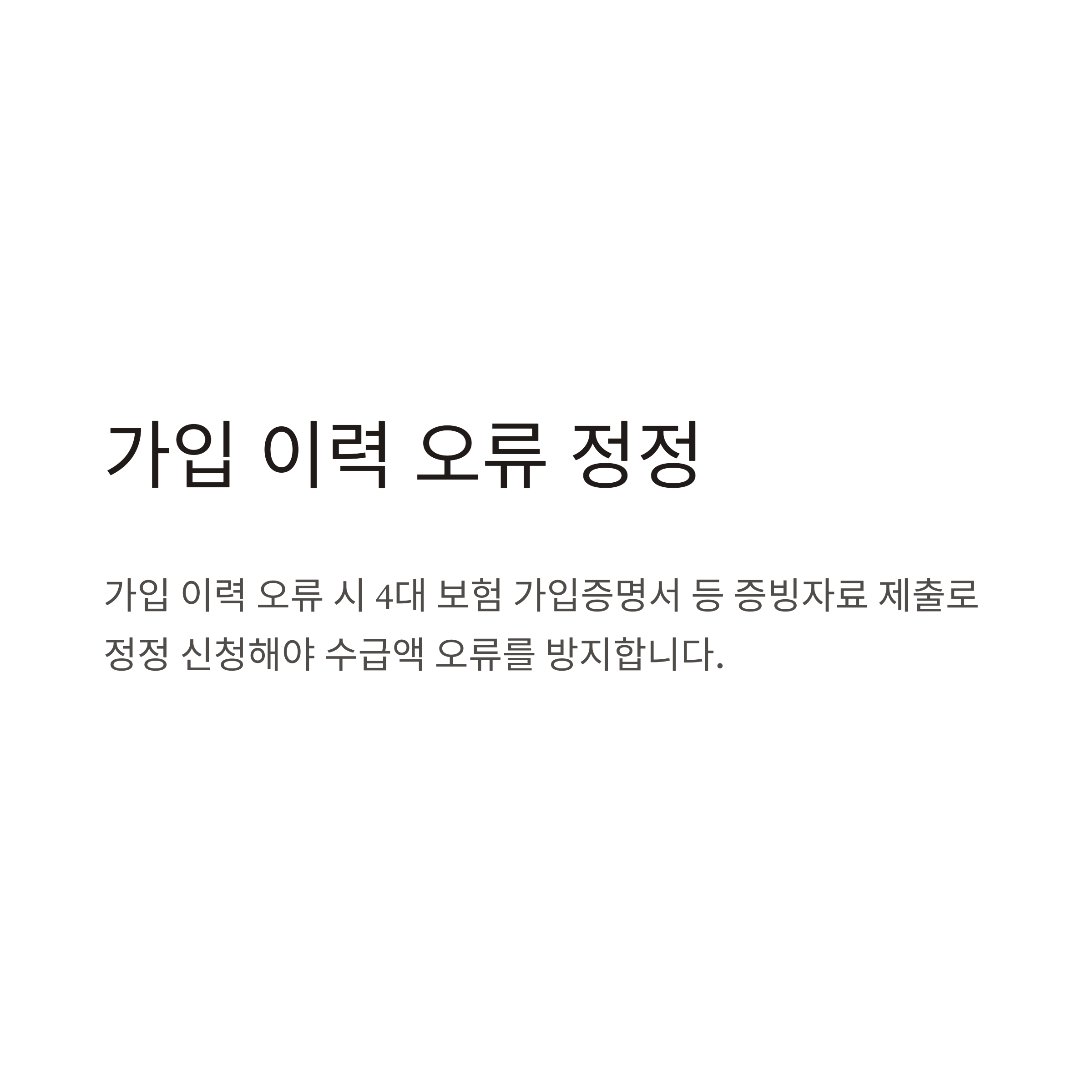 정확한 납부 이력은 수령액 계산과 직결되므로 반드시 확인하시기 바랍니다. 가입이력 오류 수정 신청