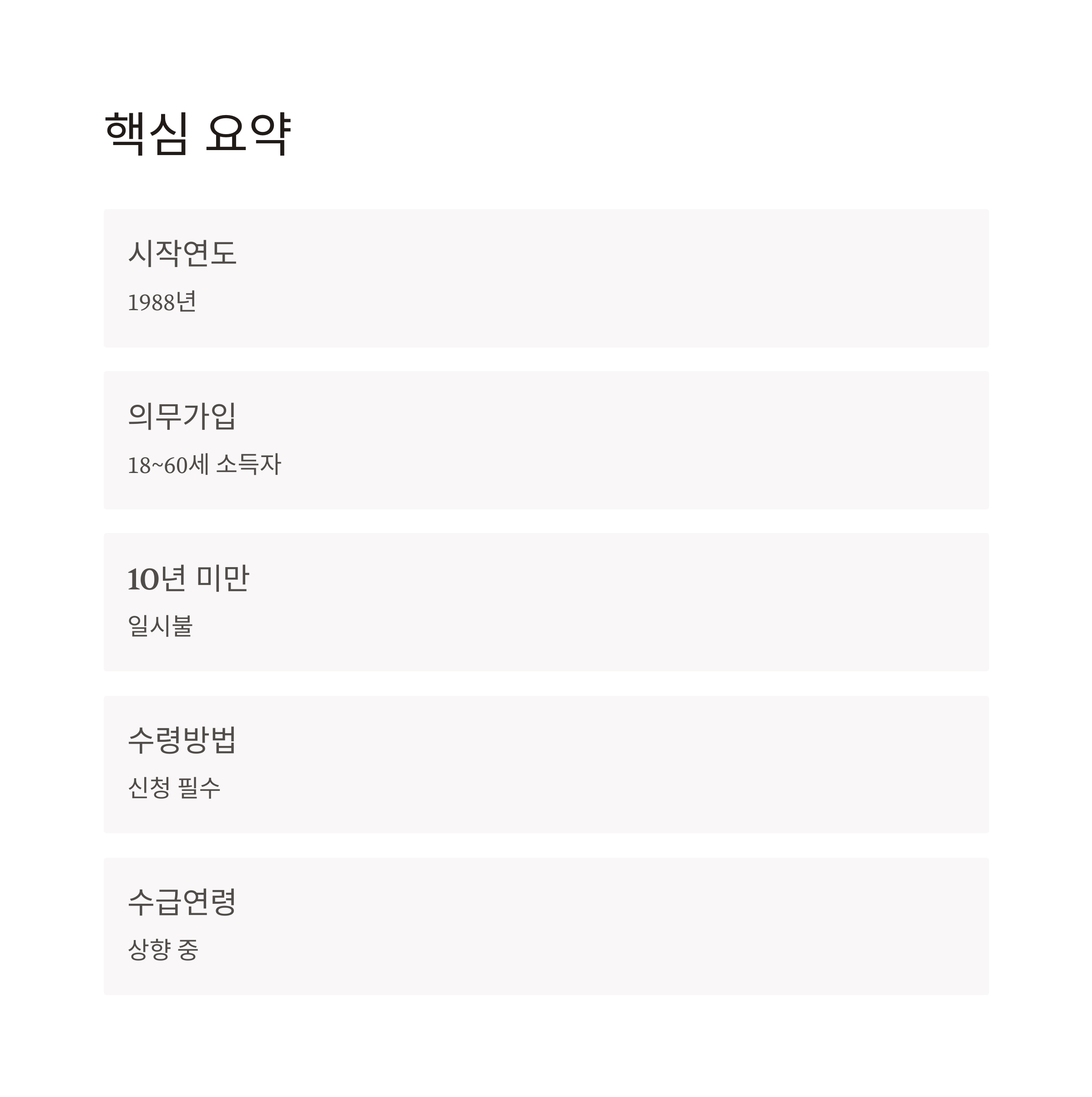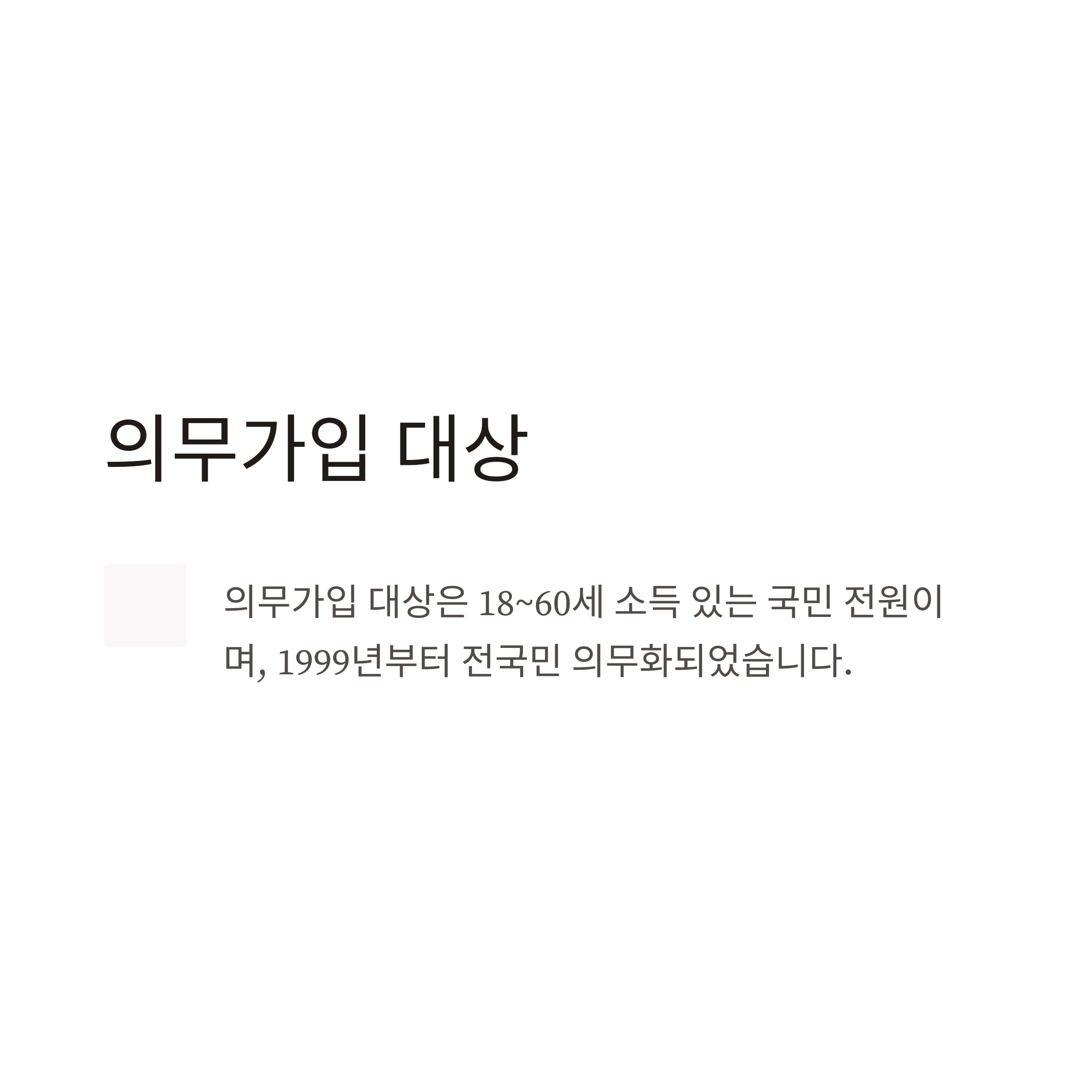 - 공무원·군인 등은 제외 (별도 공적연금 적용)