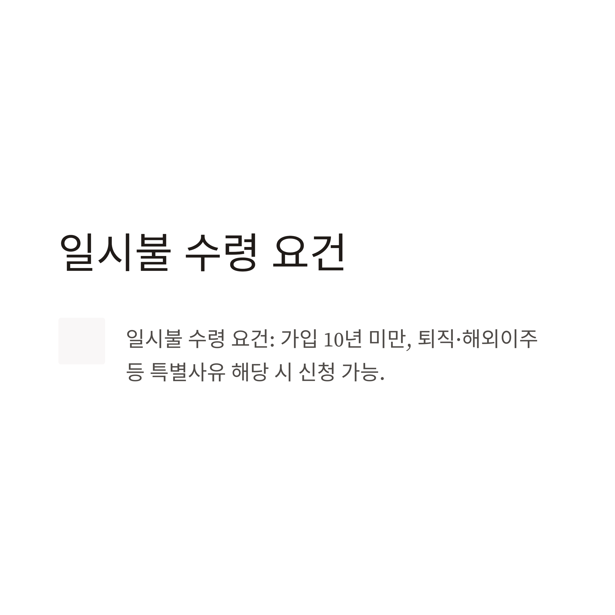| 일시불 수령 조건 | 가입기간 10년 미만 |