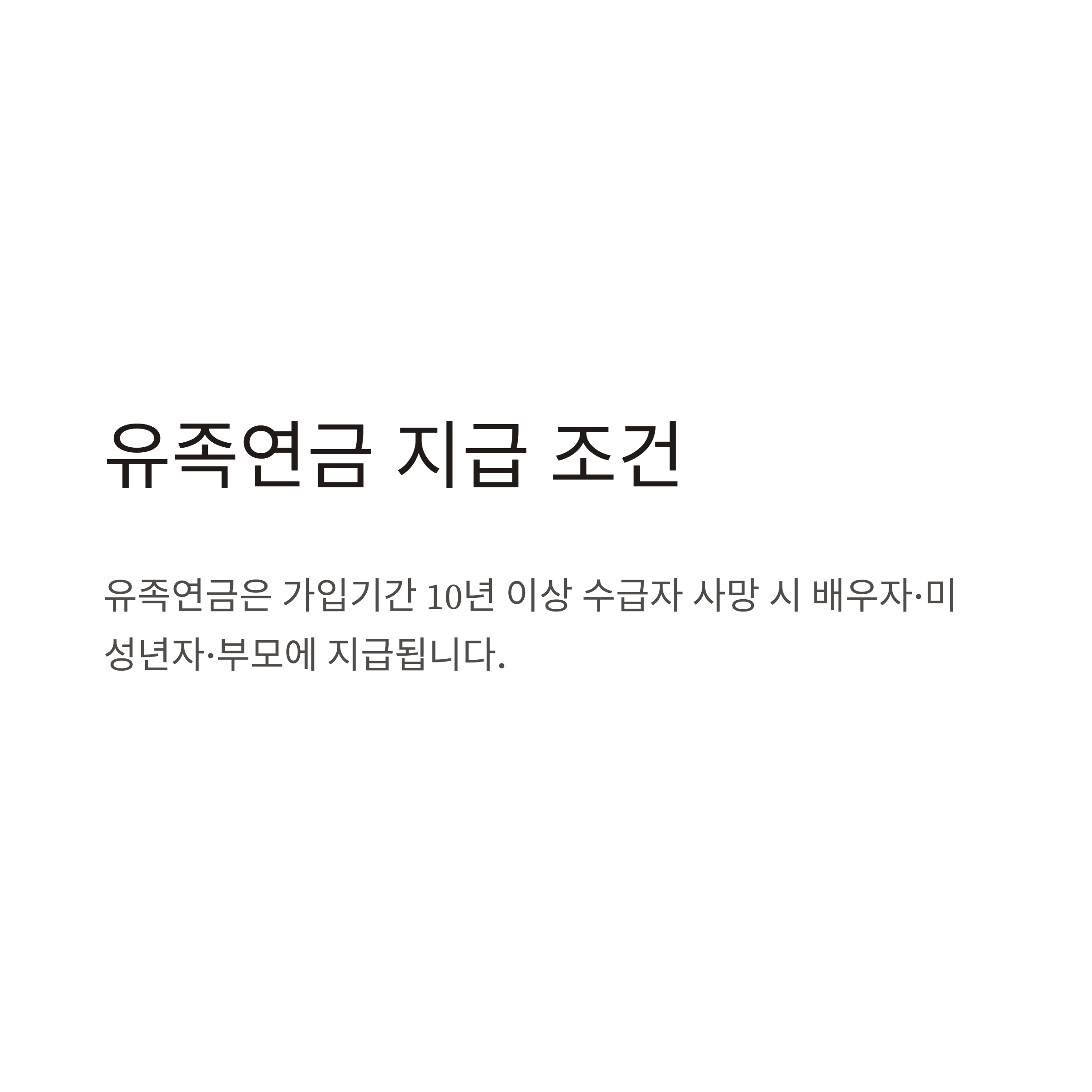 유족연금: 국민연금 수급자의 사망 시 남은 가족에게 지급 (기여형)