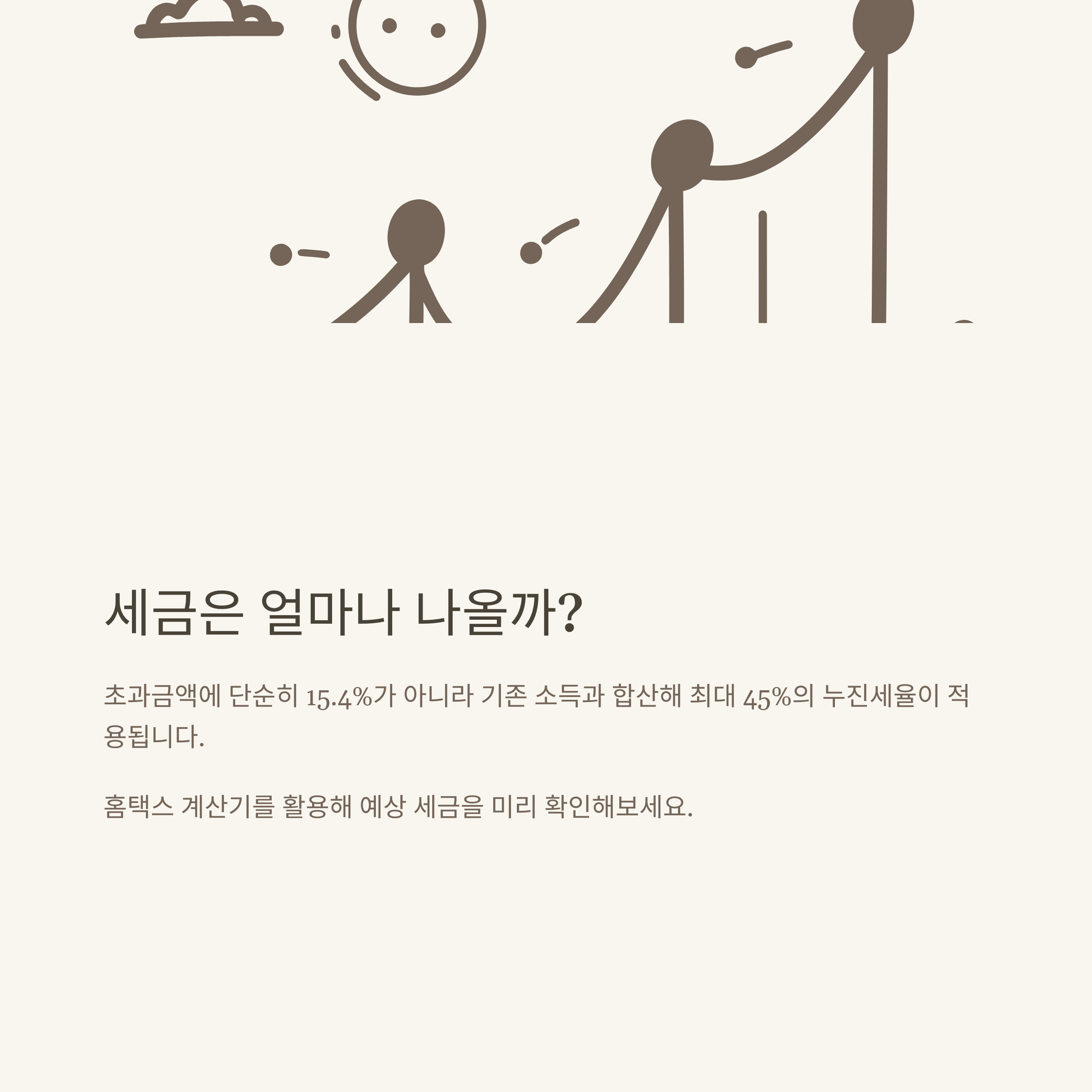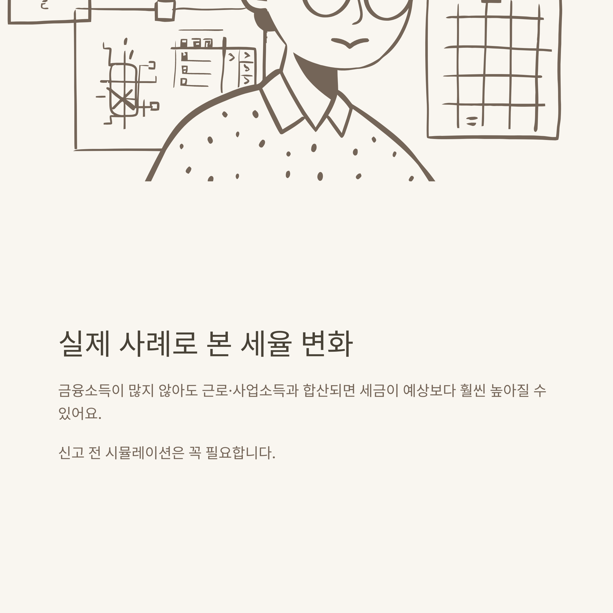 실제로 저는 금융소득이 2,000만원을 살짝 넘겨 신고했을 때, 단순 원천징수로 끝난 줄 알았지만 근로소득까지 합산된 누진세가 적용돼 생각보다 많은 세금을 추가로 냈던 적이 있습니다. 홈택스 계산기에서 미리 시뮬레이션 해보는 걸 추천드립니다.