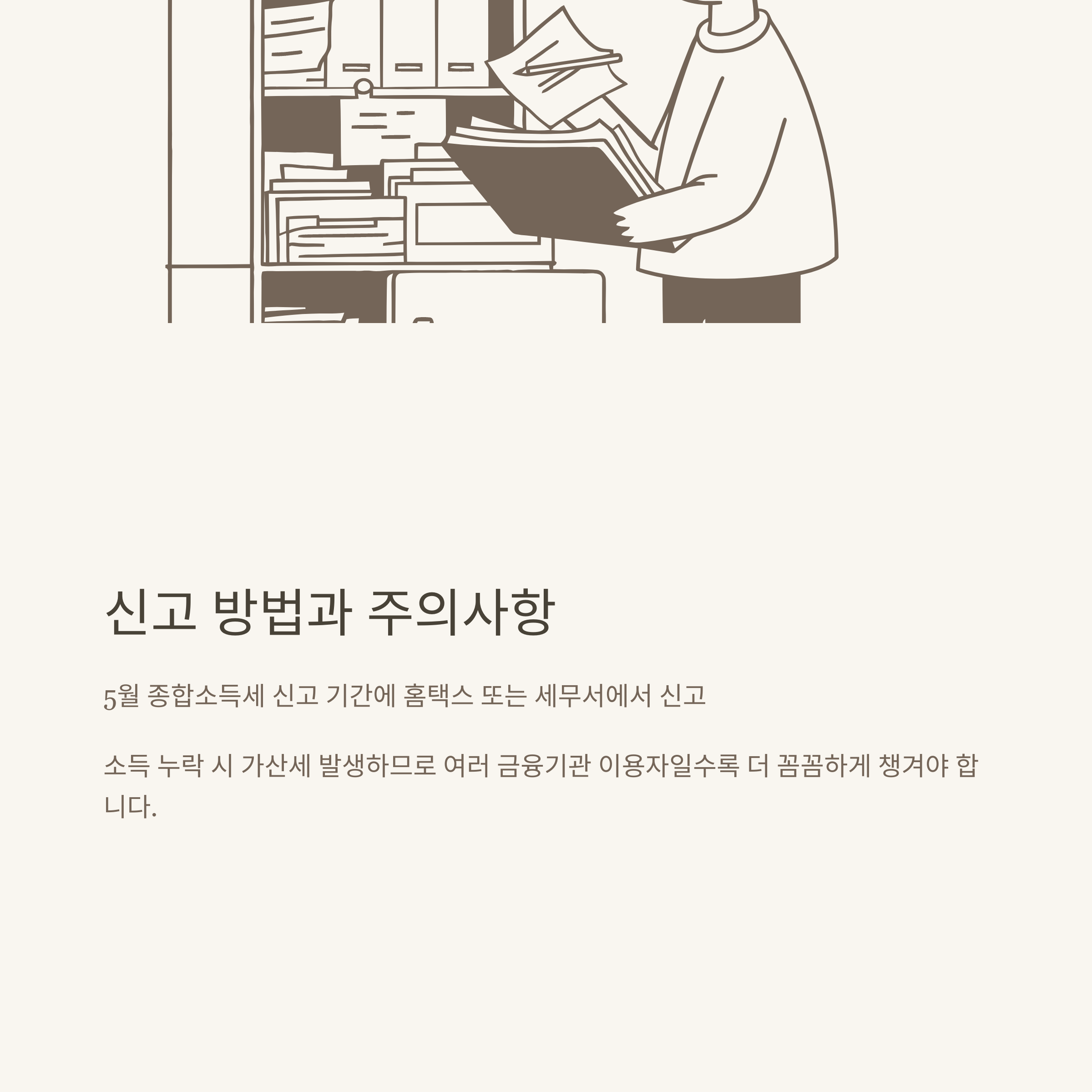- 필요 서류: 금융소득 지급명세서, 기타 소득증빙서류