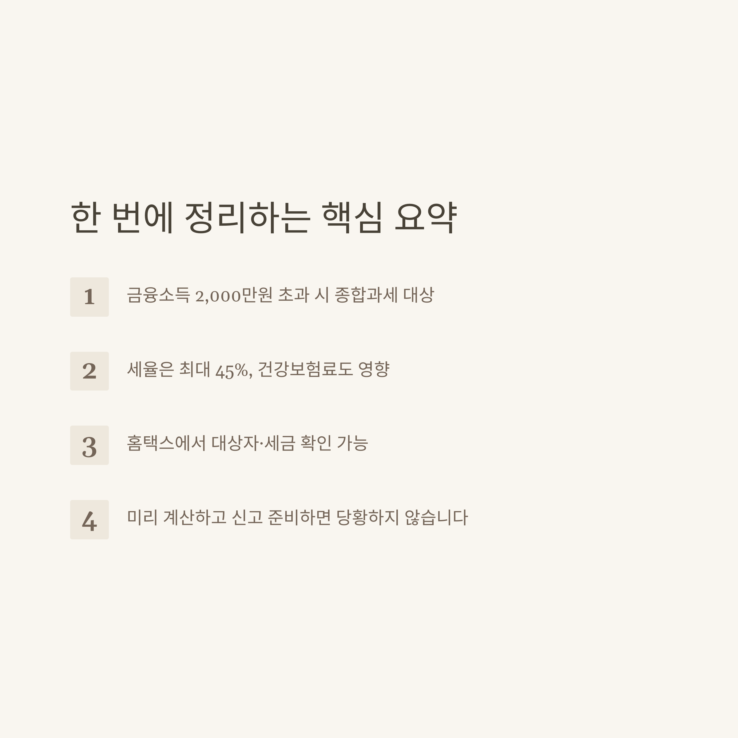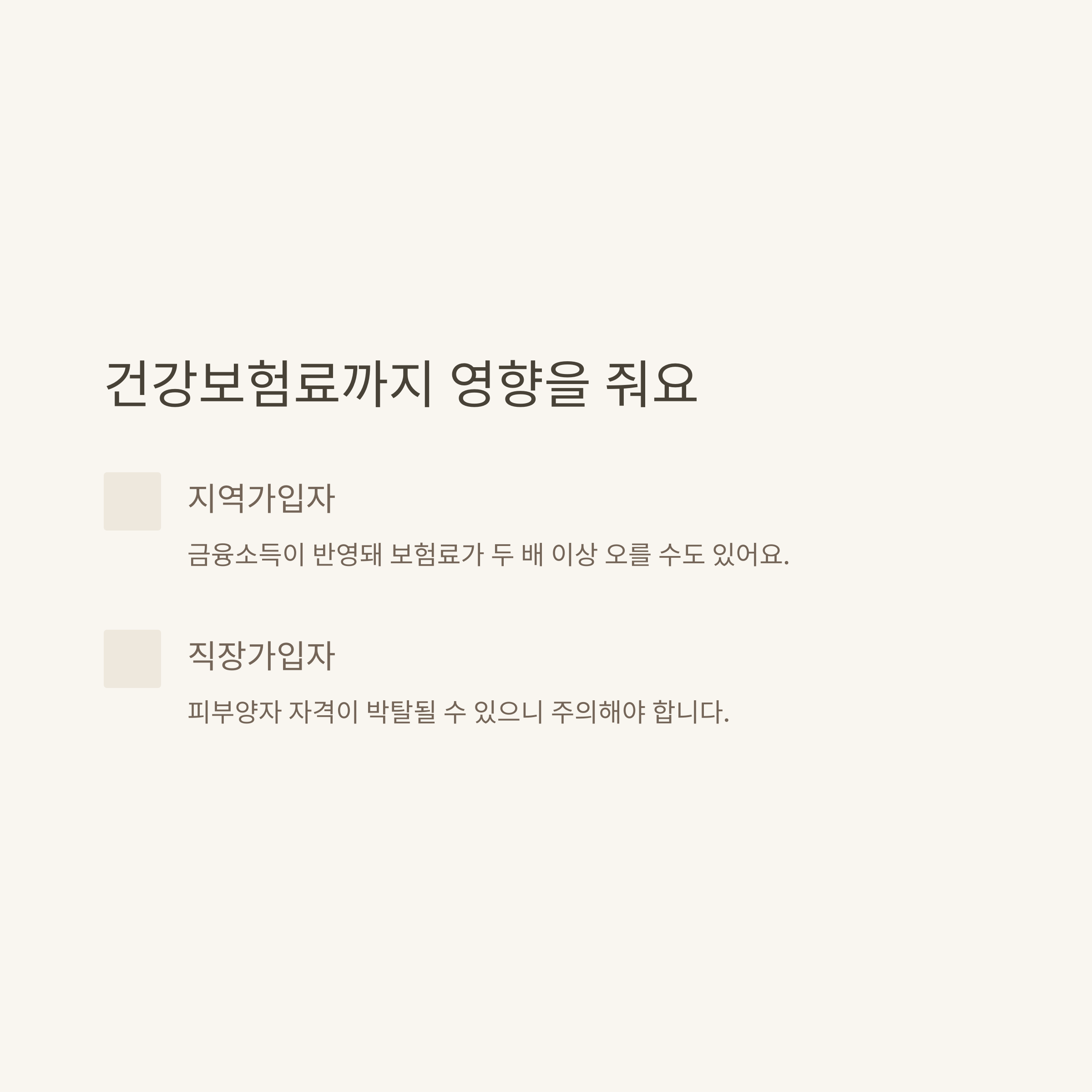 - 고액 금융소득자는 건강보험료, 종합소득세 부담까지 함께 고려해야 안전합니다