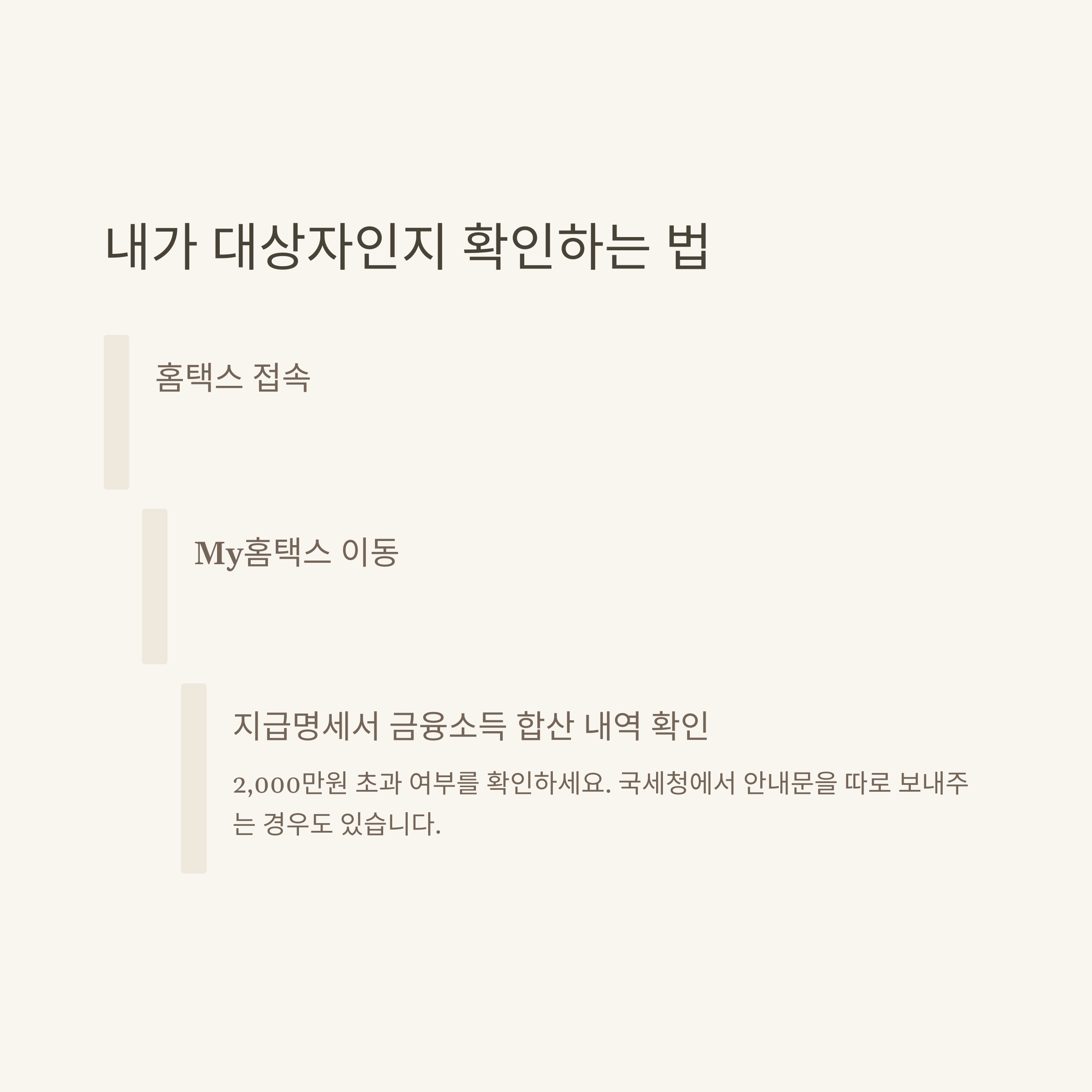 | 대상자 확인 | 홈택스 지급명세서 등에서 합산조회 | 국세청 안내문 참고 |