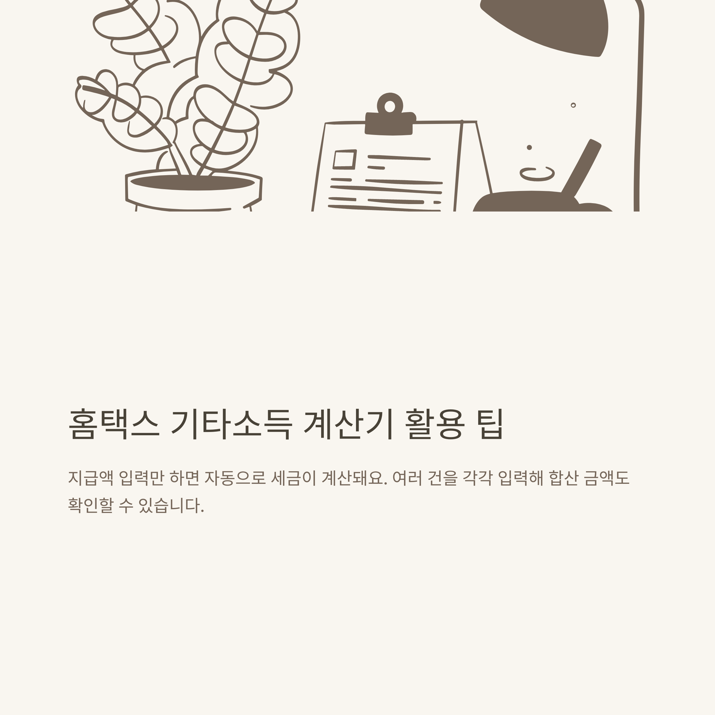 실제로 사용해본 홈택스 기타소득 계산기는 지급액과 필요경비율을 입력하면 세액이 바로 계산돼서, 기타소득이 여러 건 있을 때도 각각 세금을 빠르게 확인할 수 있습니다. 예전엔 계산기를 모르고 직접 종이에 적으며 계산하느라 시간도 오래 걸렸던 경험이 있는데, 이제는 정말 간단하게 처리하게 되더라고요.