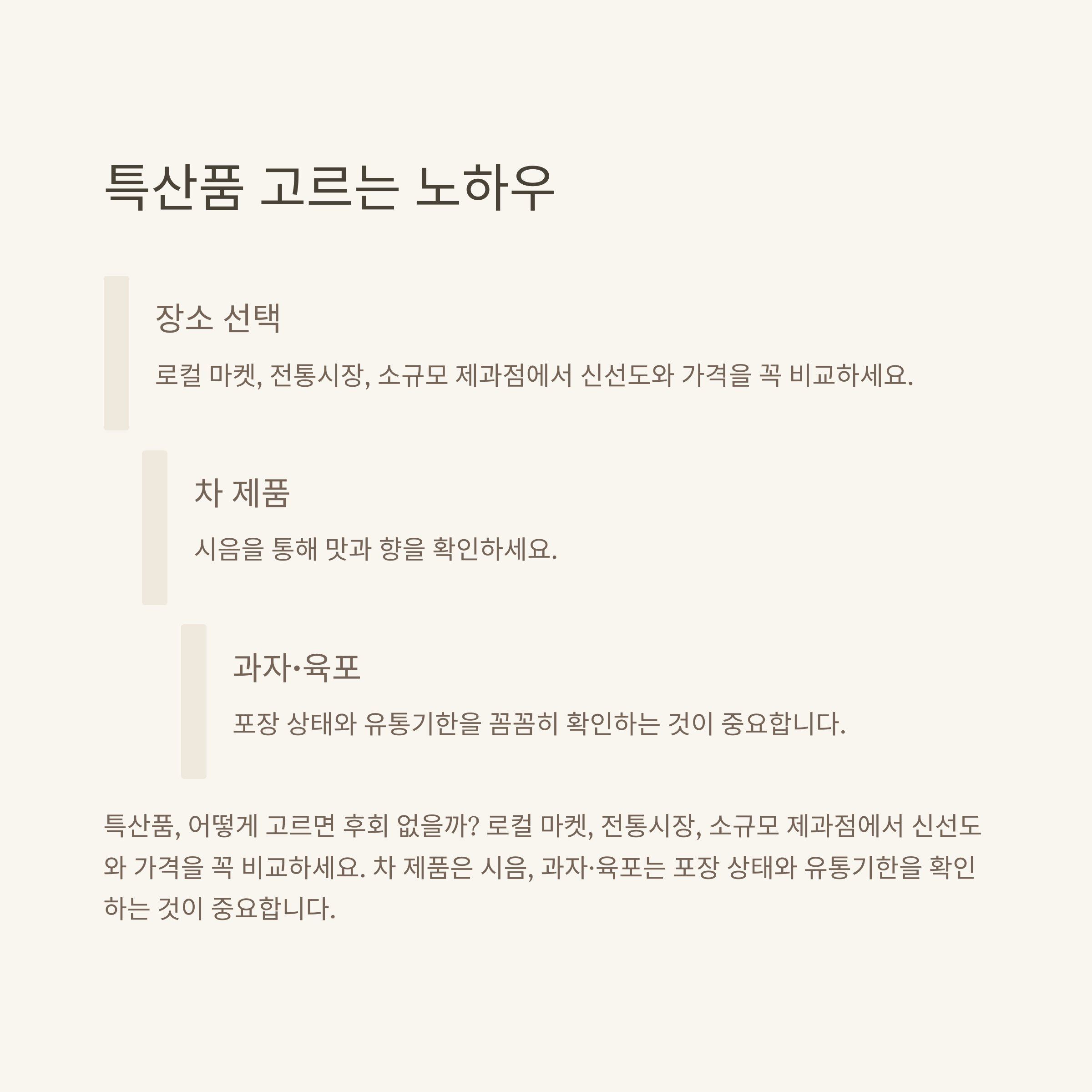 대만 여행을 여러 번 다니다 보니, 정말 대만 특산품이 뭔지, 그리고 그걸 어떻게 사야 제대로 ‘득템’하는지 감이 생겼어요. 저는 처음엔 마트, 편의점, 백화점만 돌았는데, 대만 현지 친구가 알려준 숨은 로컬 마켓, 전통시장, 소규모 공방에 직접 가보고 나서부터는 쇼핑 패턴이 완전히 달라졌습니다. 예를 들면, 파인애플 케이크는 백화점 브랜드관에서도 살 수 있지만, 시내 작은 제과점이나 시장에서 산 제품이 오히려 더 신선하고 가격도 저렴했어요. 또, 우롱차나 동방미인차는 관광지 기념품점보다 차 전문 매장에서 시음해보고 고르는 게 훨씬 만족도가 높았습니다. 직접 경험하며 느낀 대만 특산품 쇼핑 팁은 다음과 같습니다.
