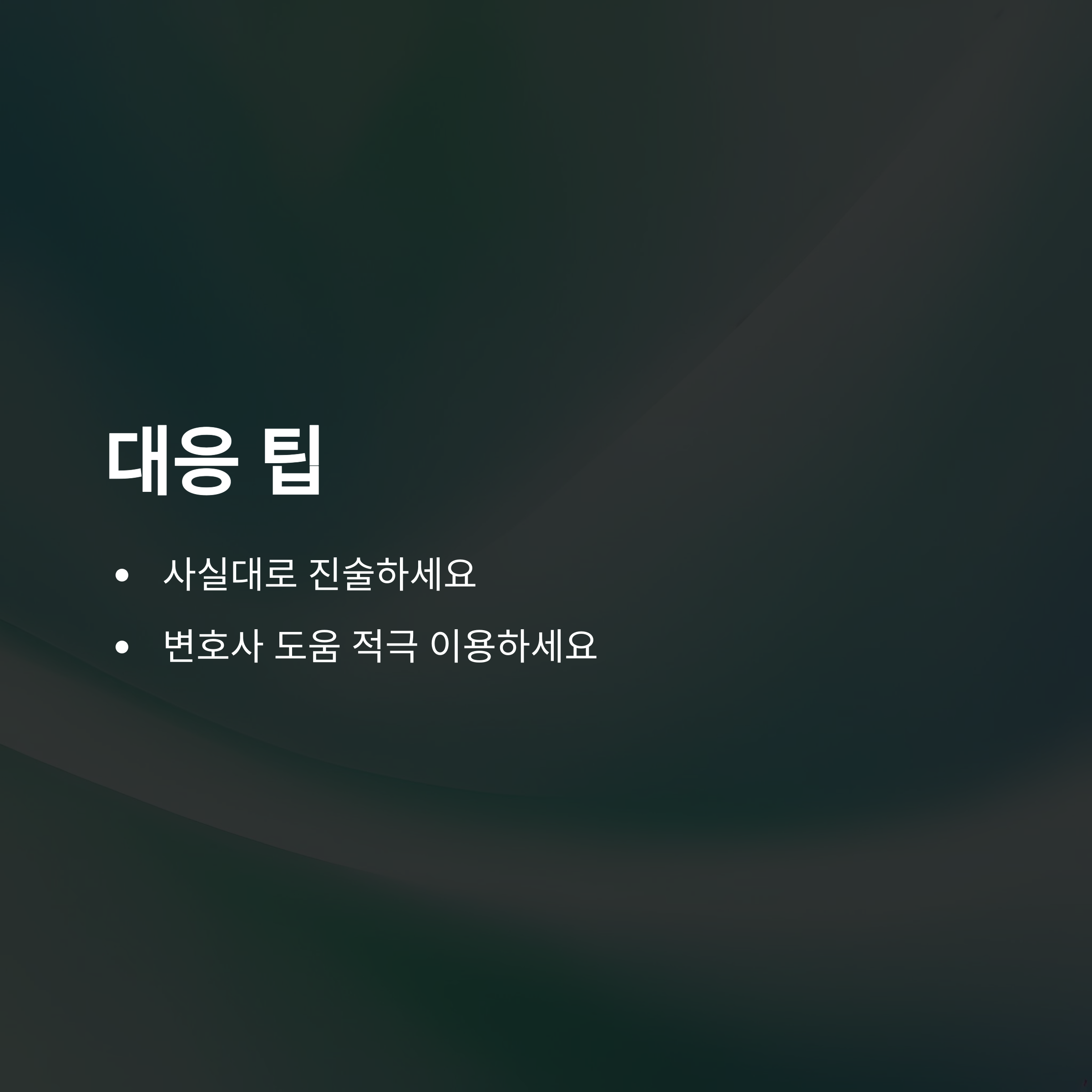 수사 단계에서 허위진술하거나 도망가는 경우, 오히려 혐의가 무겁게 인정될 수 있으니 절대 피하지 마시고 변호사 협회 또는 형사전문 변호사 상담을 반드시 병행하세요. 진심 어린 반성과 협조가 최선의 방어 전략이 될 수 있습니다.