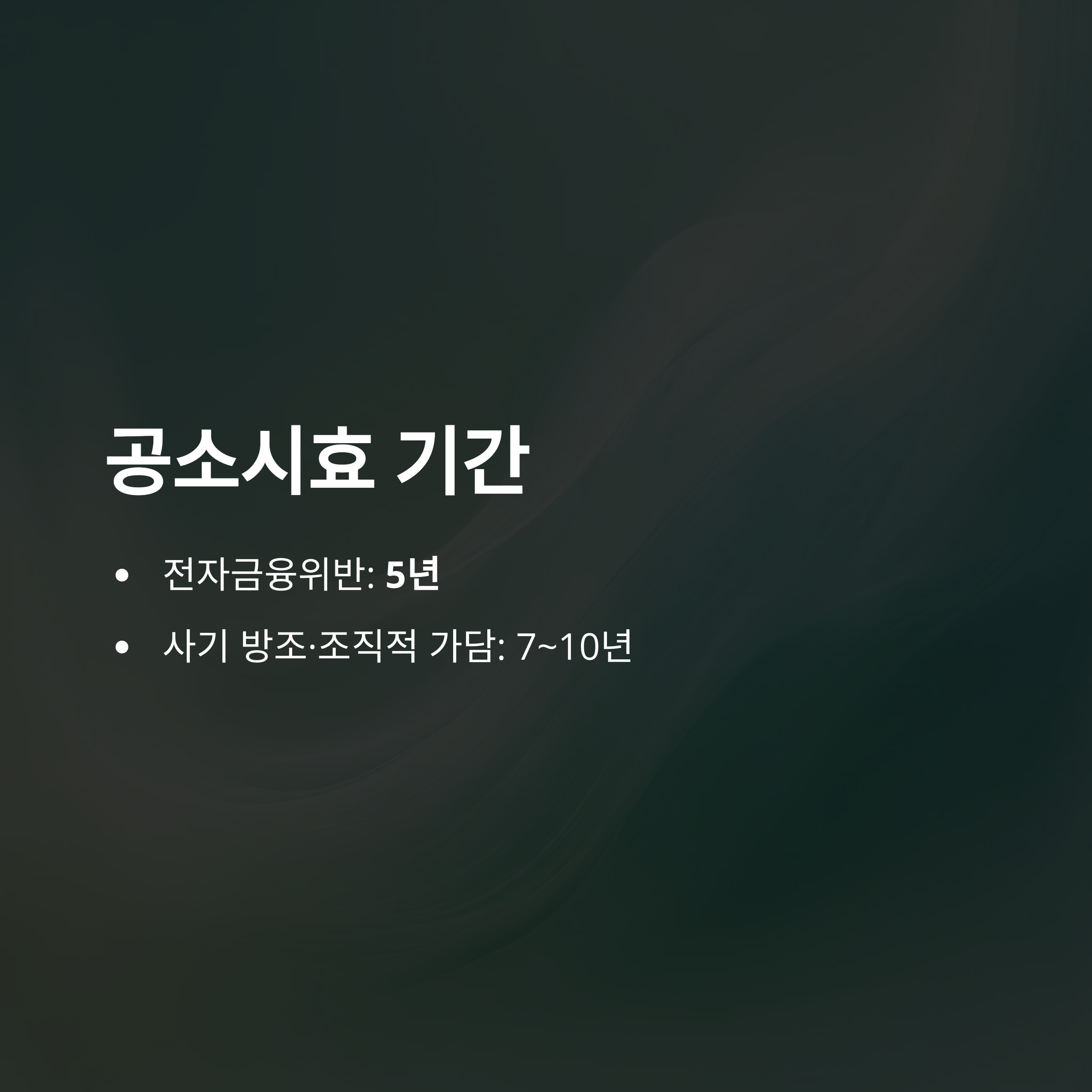 | 공소시효 | 보통 5년, 사기 연계시 최대 10년 |