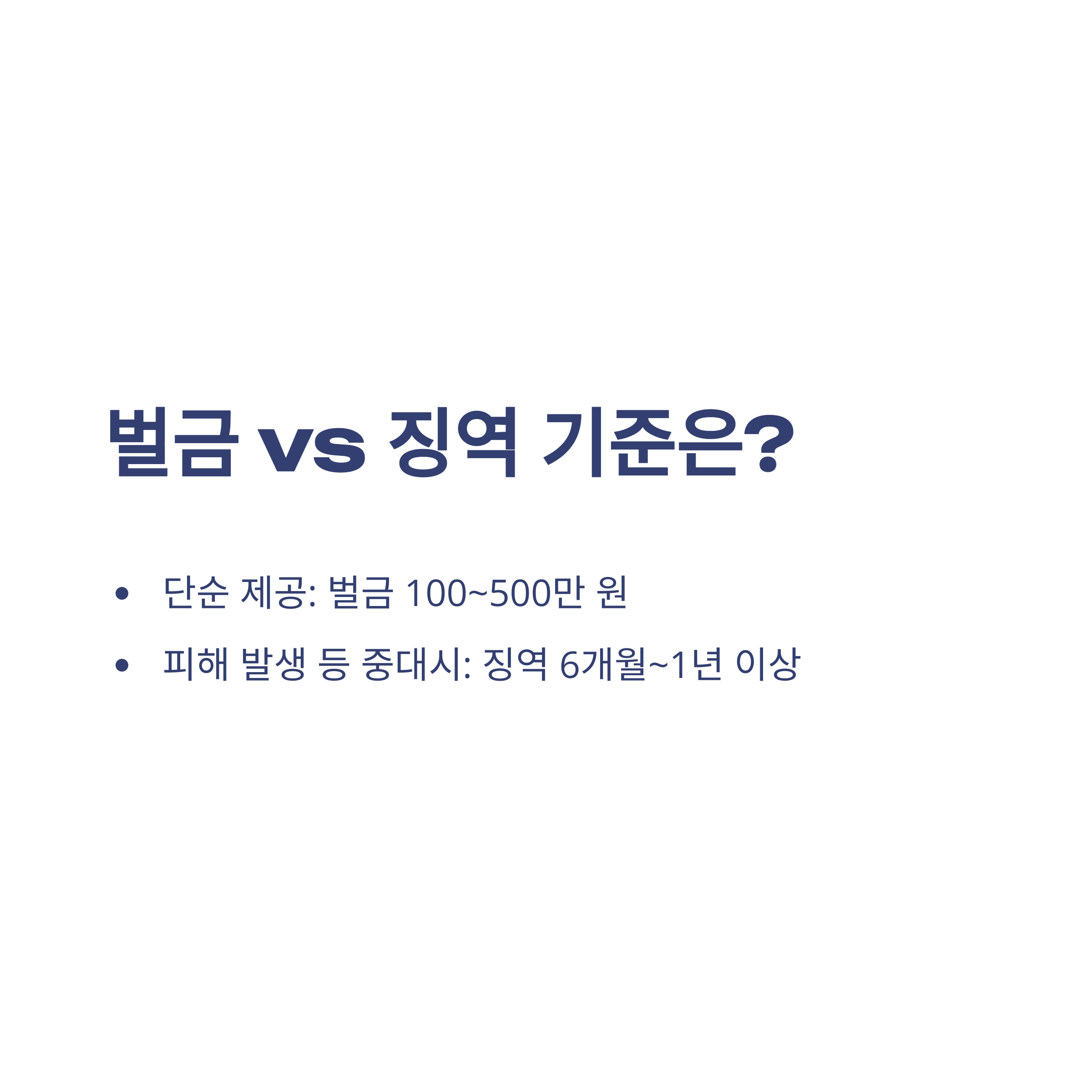 A. 조건에 따라 다릅니다. 금전적 이득이 없고 피해가 발생하지 않았다면 벌금형 가능성 있지만, 반복 제공 시 실형도 가능합니다.