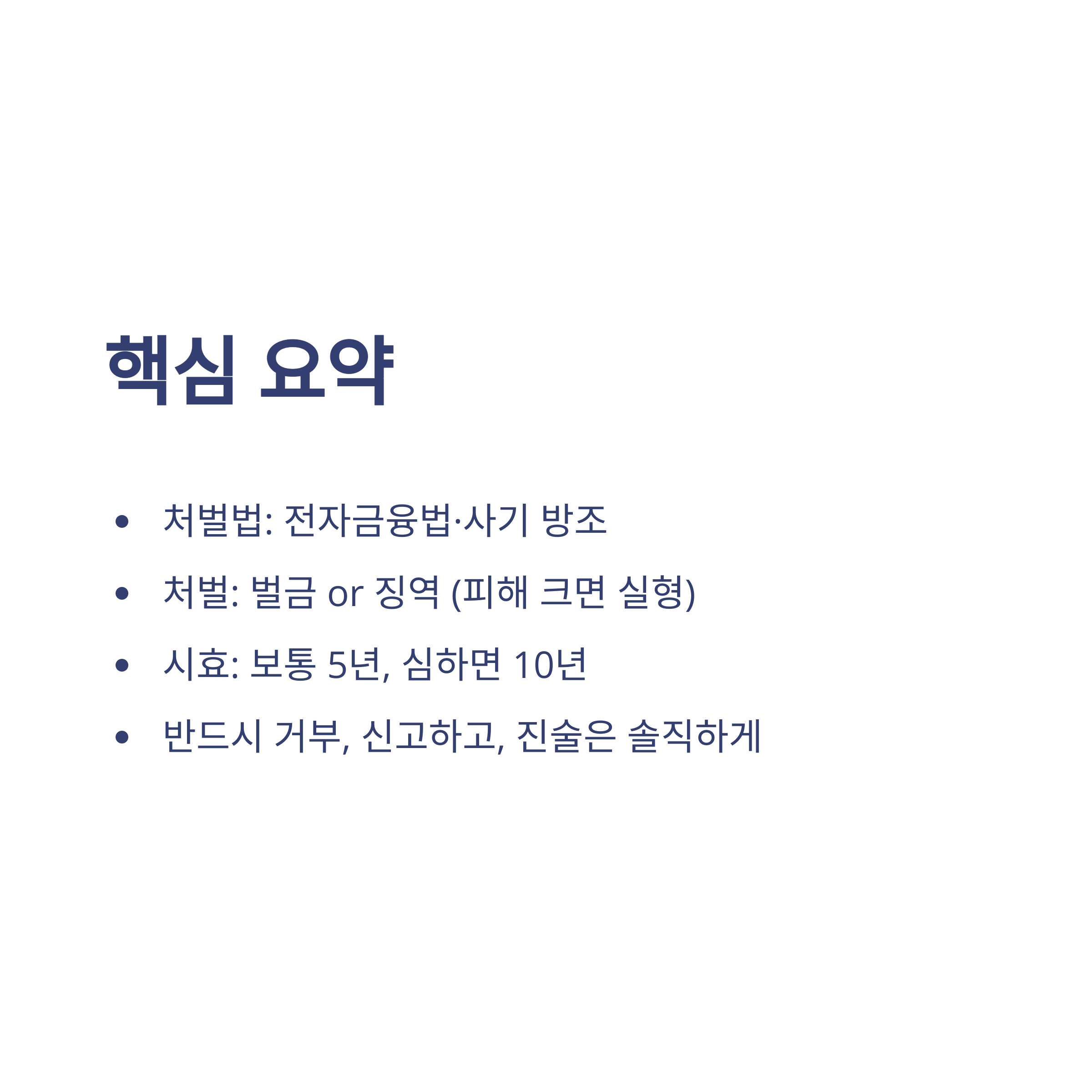 | 예방 팁 | 용도 확인 없는 통장 개설 절대 금지, 의심시 즉시 신고 |