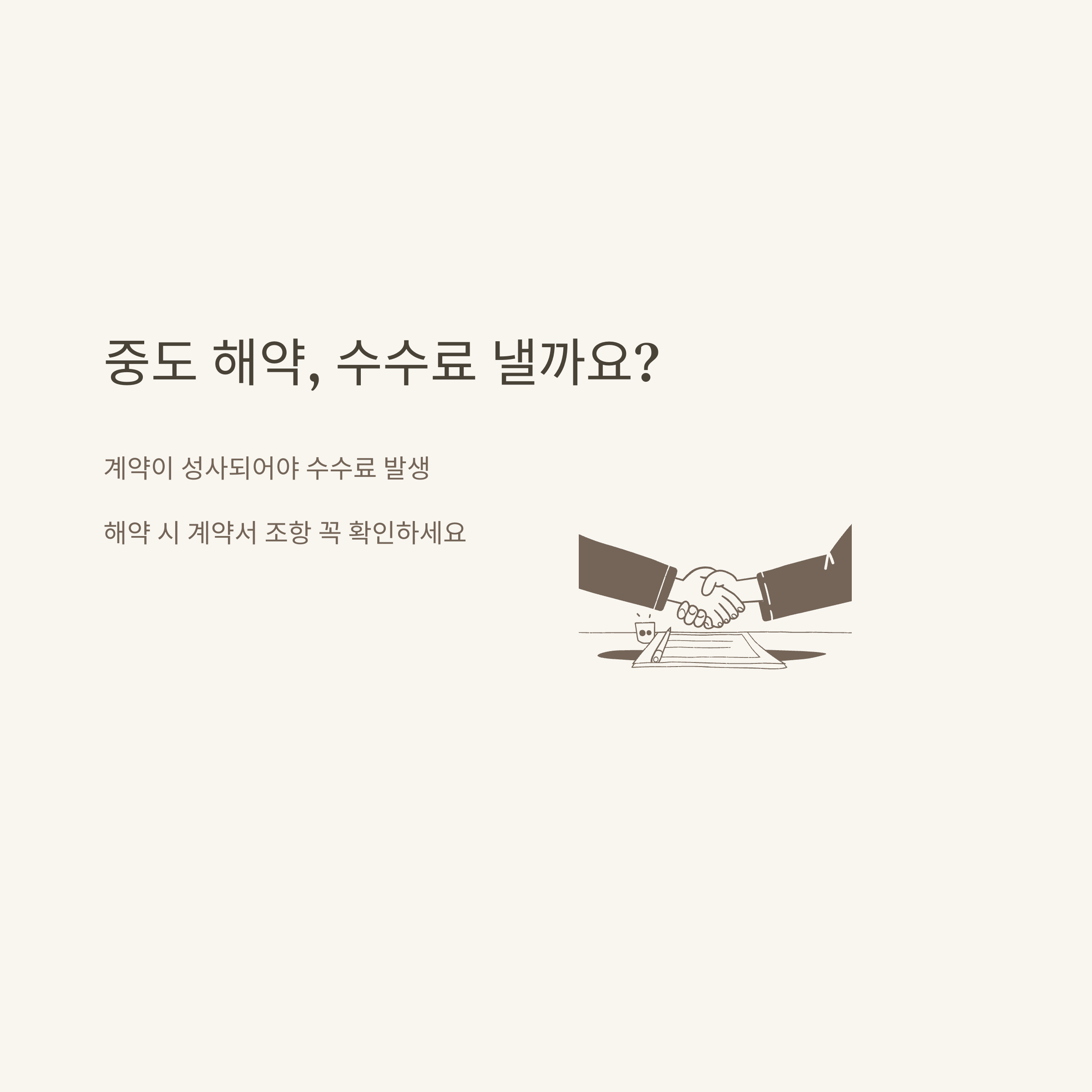 A. 원칙적으로 계약이 체결되어야 수수료가 발생하며, 중도 해약 시 계약서 내 조항을 확인해야 합니다.
