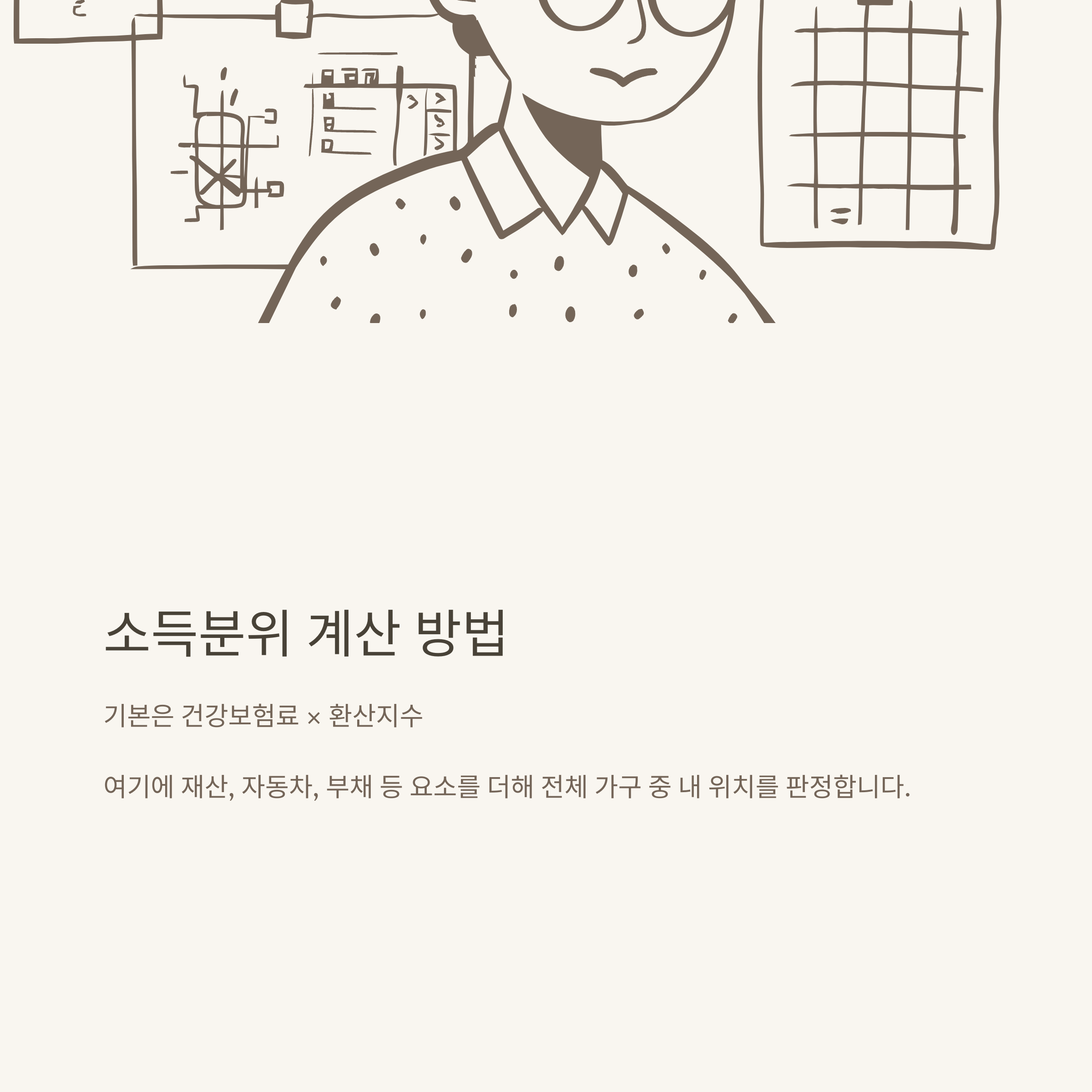 소득분위 계산은 생각보다 복잡한데, 저는 처음엔 단순히 월급만 합산하는 줄 알았다가 실제로는 건강보험료, 가족 재산, 자동차, 부채까지 고려되는 걸 보고 놀랐던 적이 있습니다.