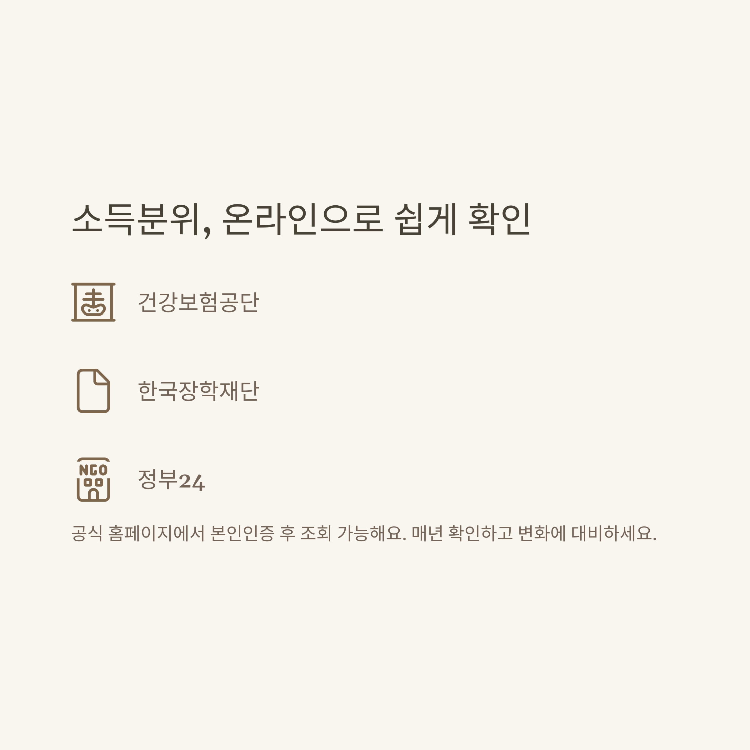 더 자세한 공식 정의와 활용 기준은 정부24 소득분위 안내에서 확인하실 수 있습니다.
