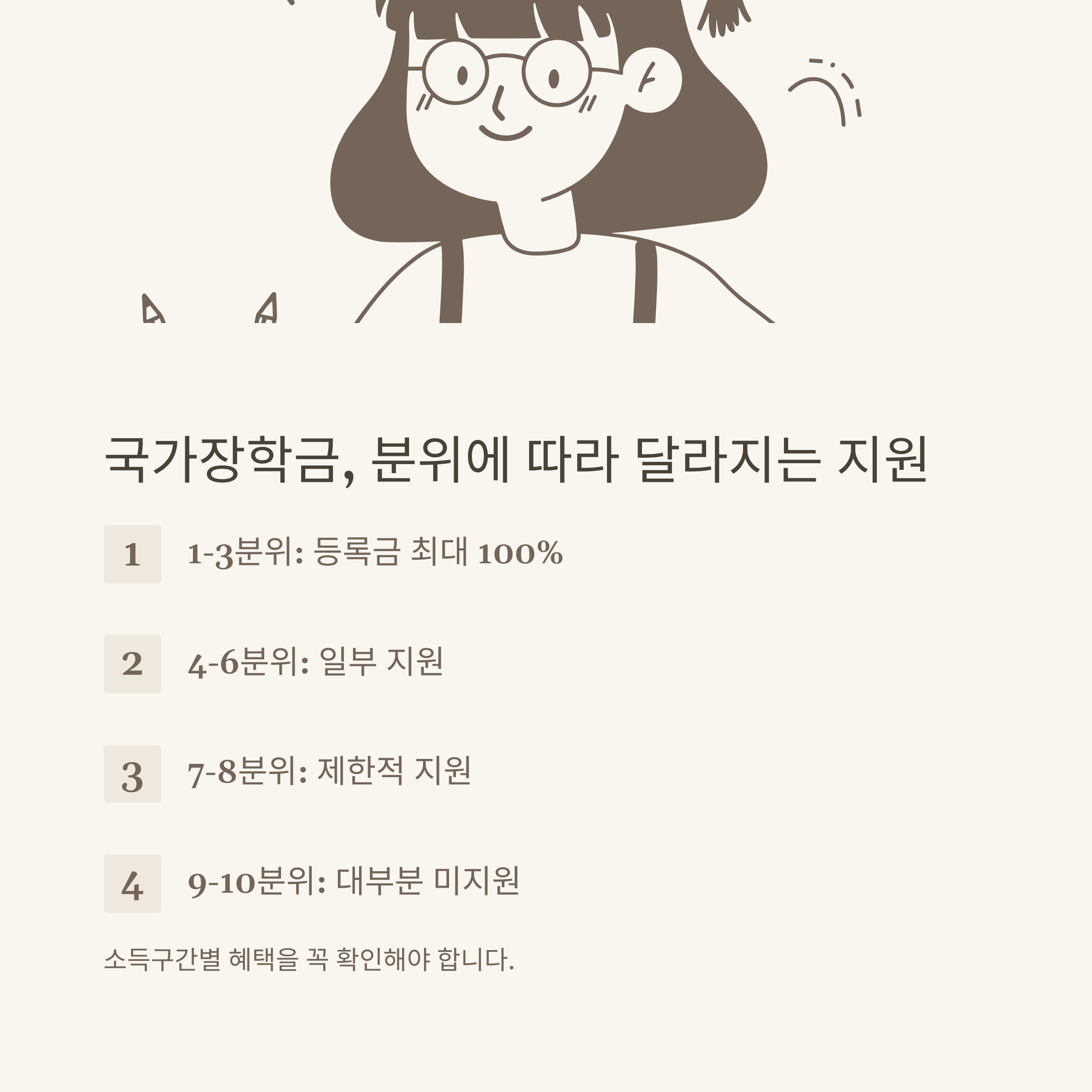 실제로 소득분위에 따라 누릴 수 있는 혜택이 확 달라집니다. 저도 대학생 시절 소득분위가 낮아 국가장학금 혜택을 크게 받은 경험이 있고, 친구들 중엔 같은 학교인데도 소득분위 때문에 장학금 액수가 달랐던 경우가 정말 많았습니다.