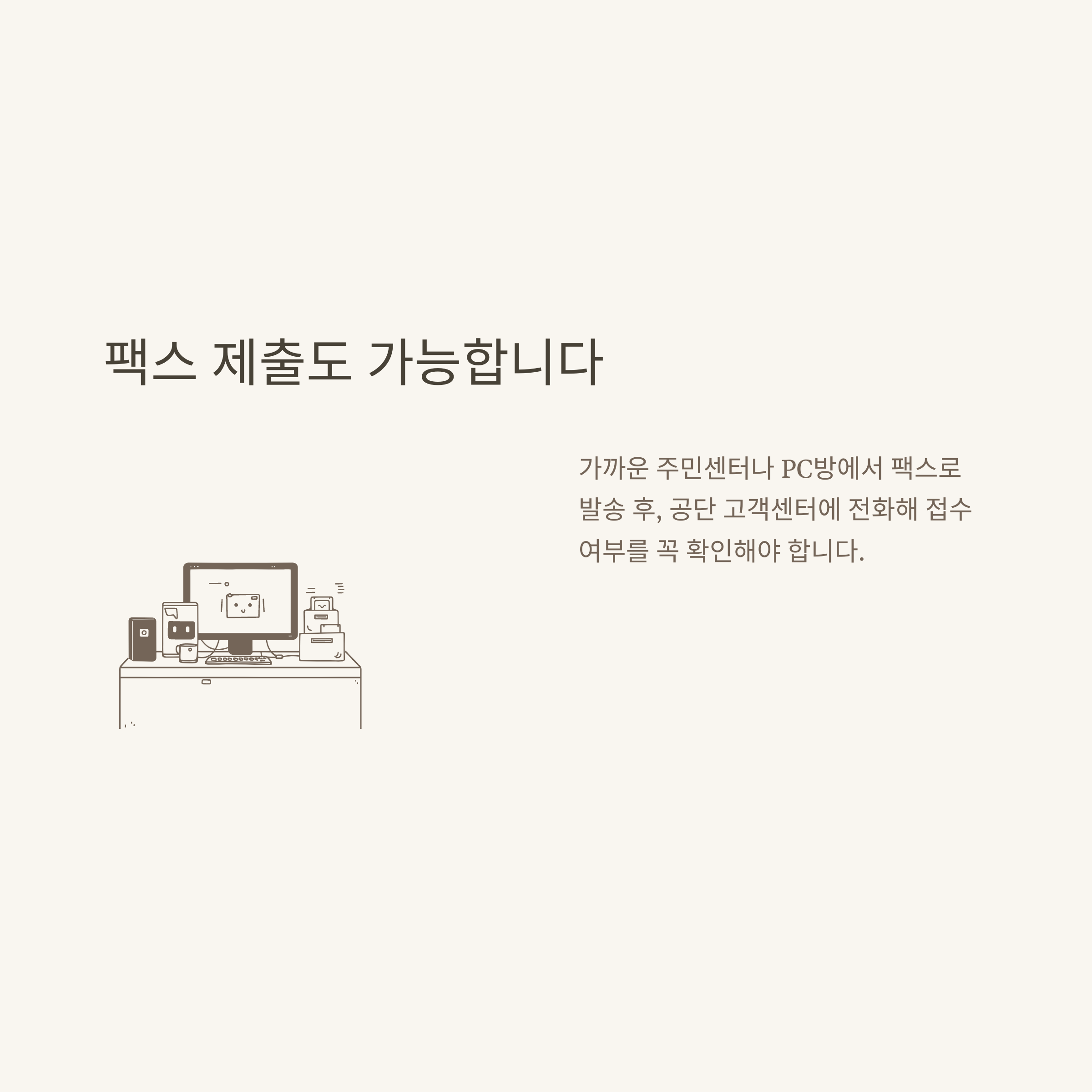 - 오프라인 제출: 직접 지사 방문, 현장 작성 및 제출, 담당자 상담까지 한 번에 처리