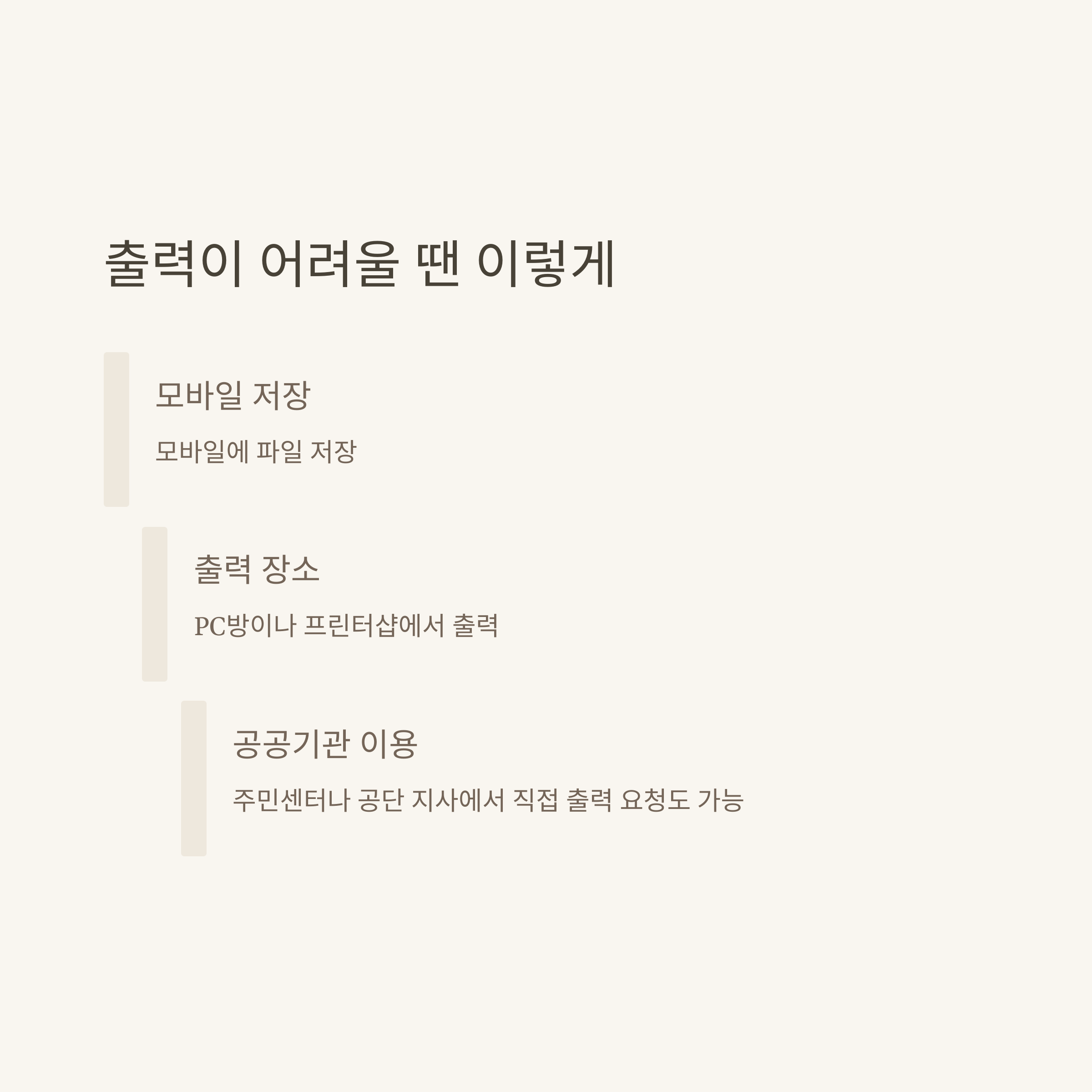 - 모바일 저장 후 근처 PC방·프린터샵에서 출력 가능