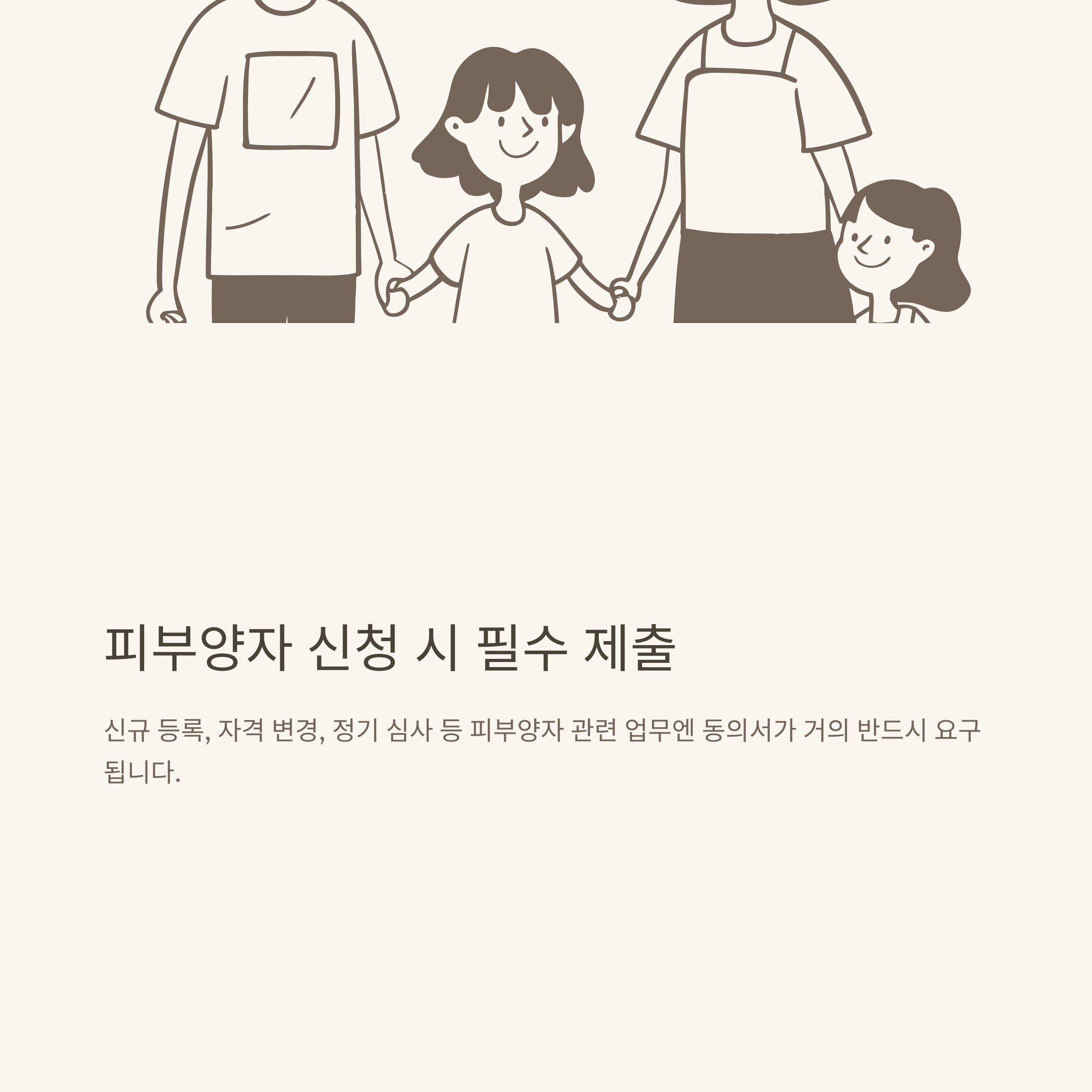 피부양자 자격을 신청할 때 소득 정산부과 동의서 제출이 꼭 필요한가요? 저도 가족을 피부양자로 올릴 때 담당자에게 여러 번 문의한 적이 있습니다. 실제로 건강보험 피부양자 신규 신청이나 변동, 자격 유지 심사 시에는 소득 정산부과 동의서가 거의 필수적으로 요구됩니다. 이 서류가 있어야 공단이 국세청 자료를 공식적으로 조회할 수 있고, 빠른 자격 심사가 가능해져서 제출을 미루면 처리도 함께 지연됩니다.