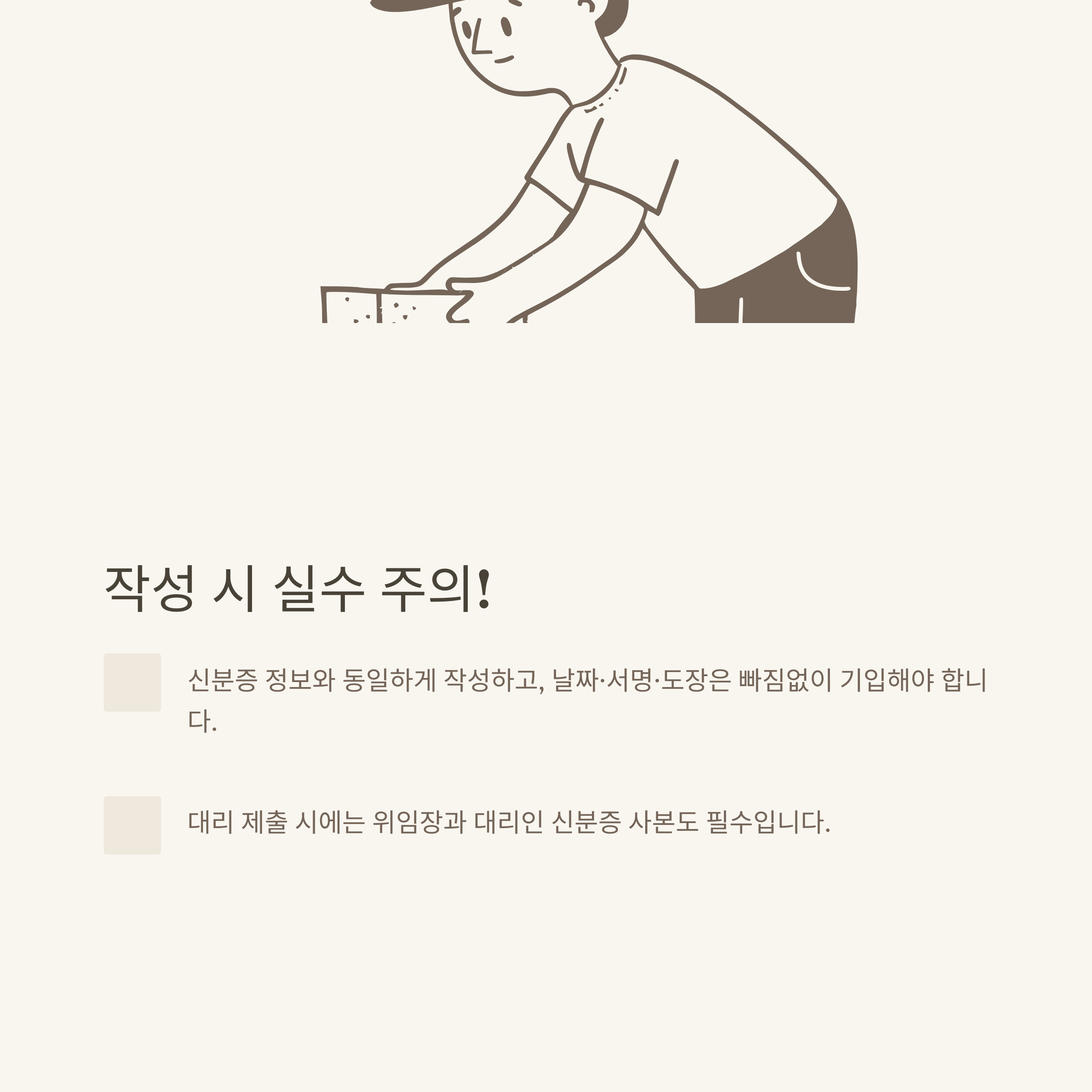 - 대리인 제출 시에는 위임장 및 대리인 신분증 사본까지 반드시 첨부