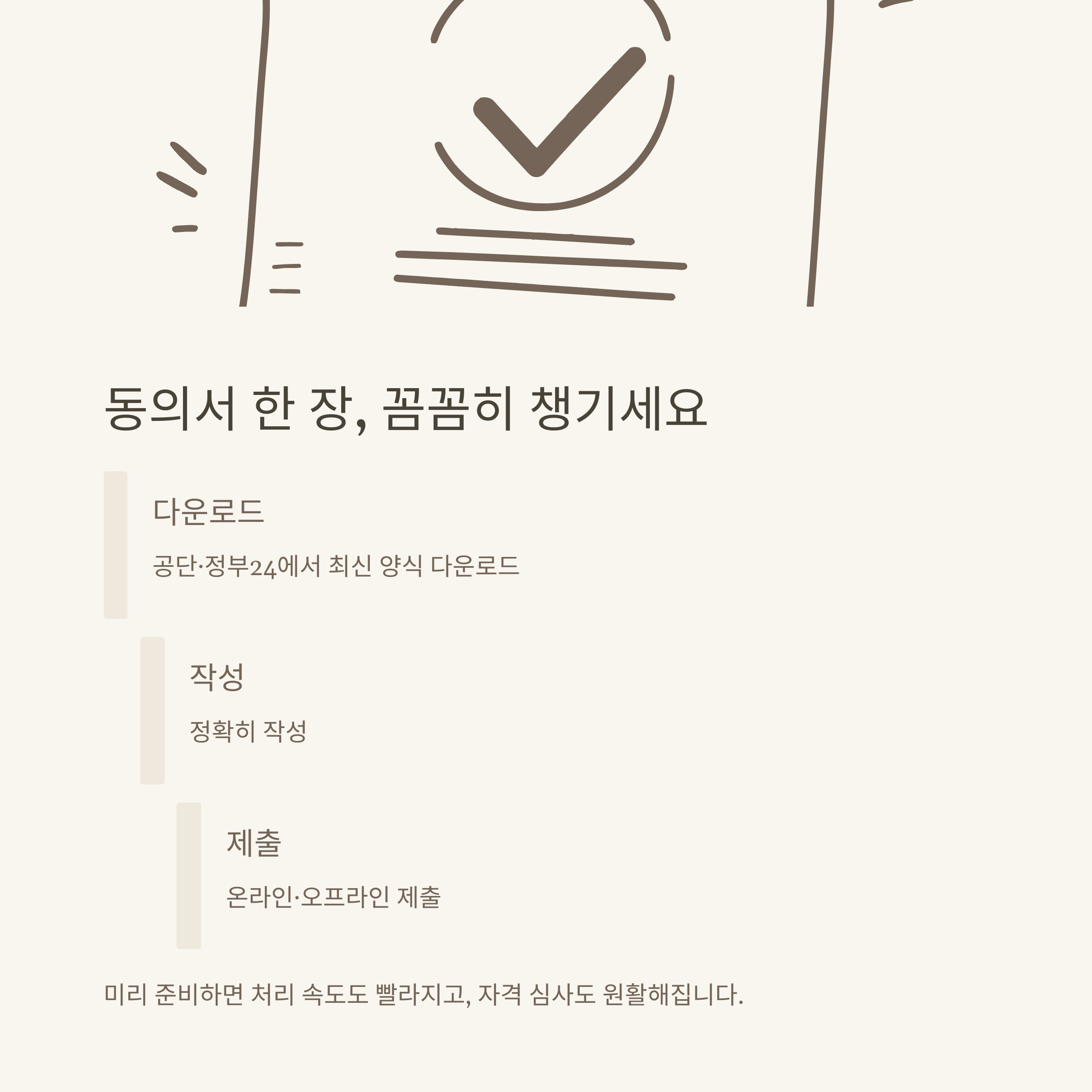 - 동의서 미제출 시 자격심사 지연 및 반려 사유 발생