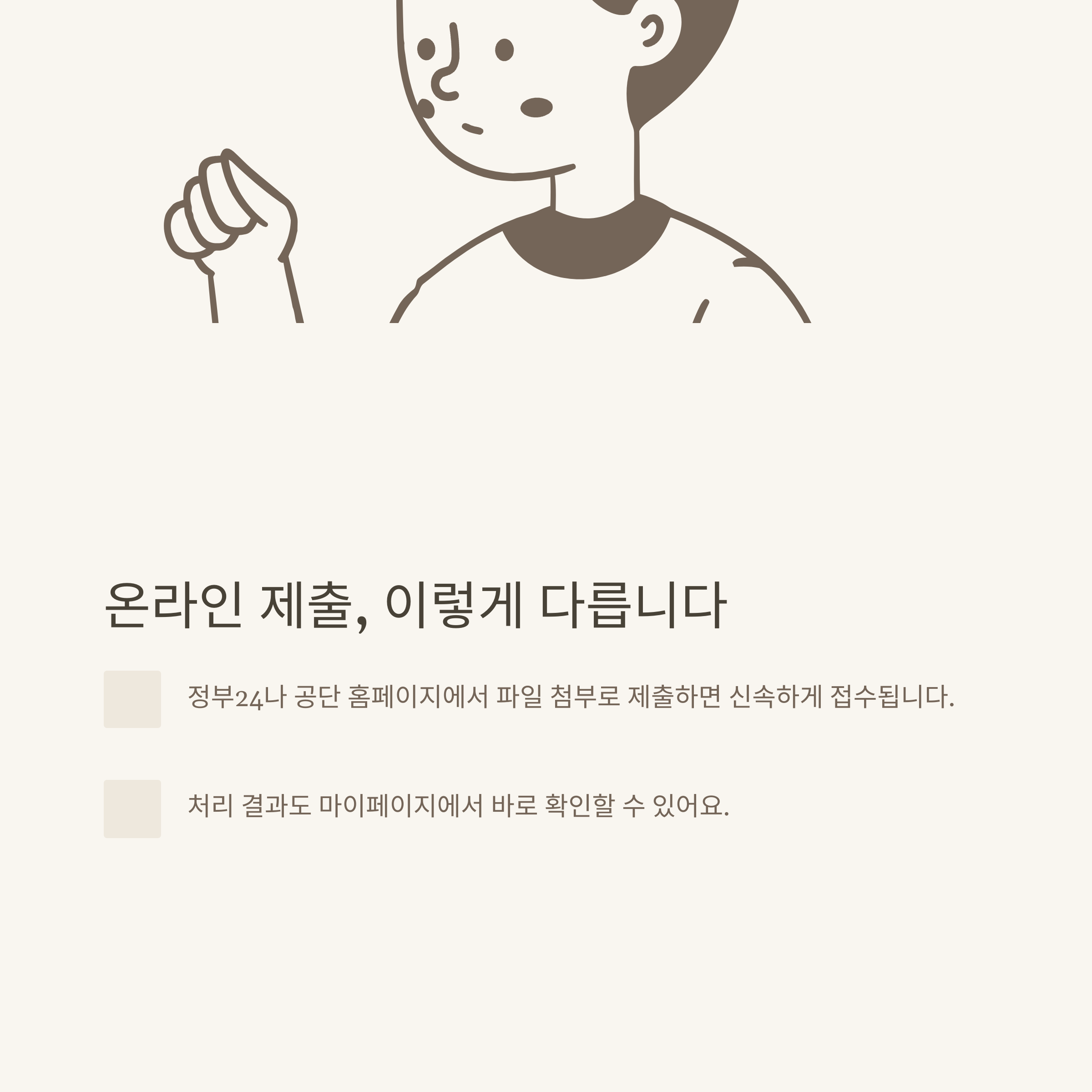 - 온라인은 처리 결과가 빠르고, 진행상황도 마이페이지에서 바로 확인