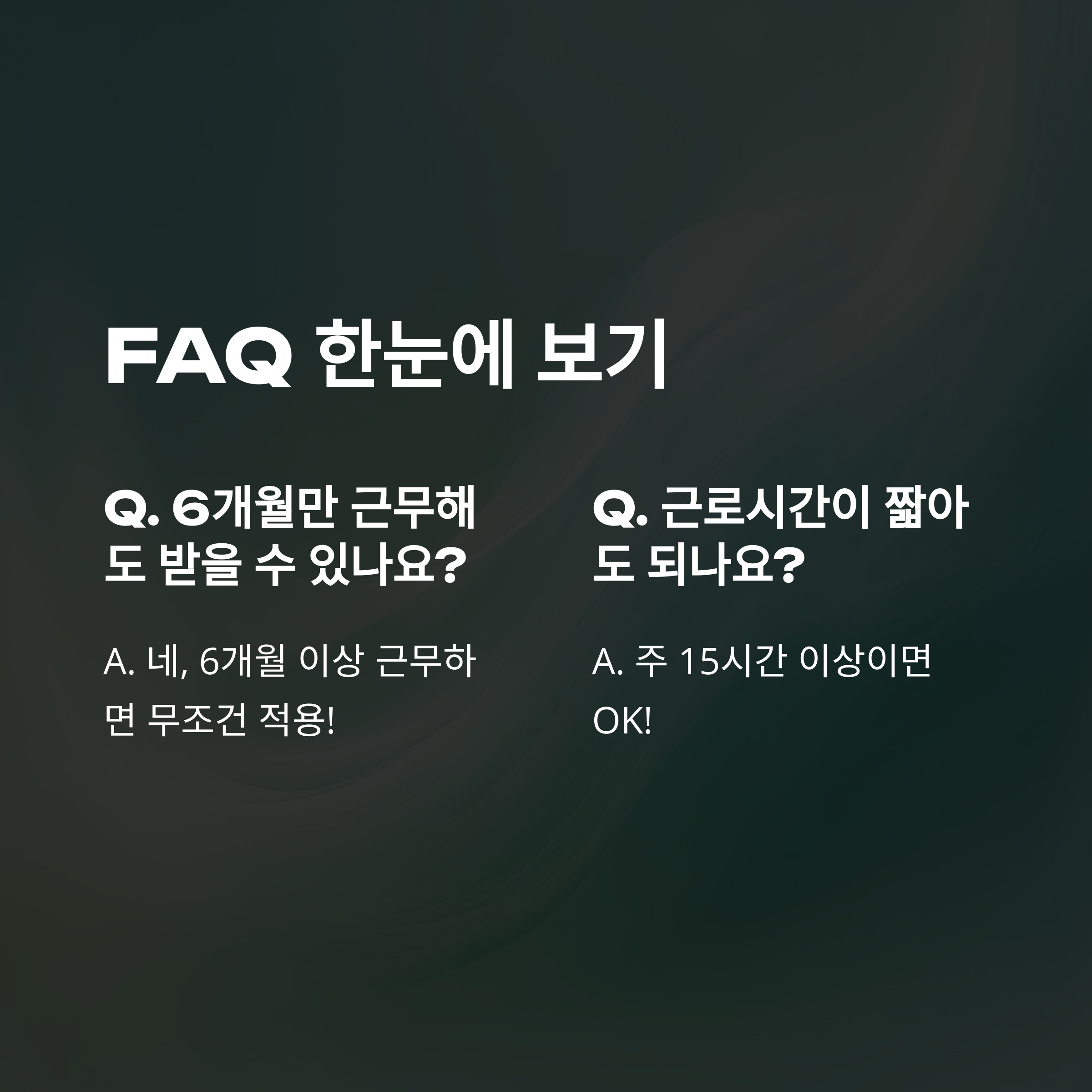 - 주 15시간 이상, 6개월(180일) 이상 근무 필요