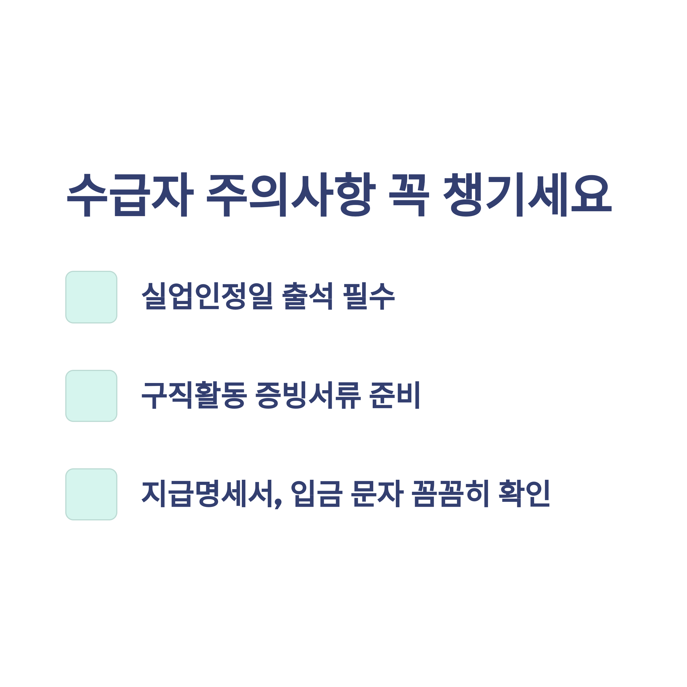 | 실업인정일 | 출석·서류 미비 주의 | 정확한 출석 필요 |