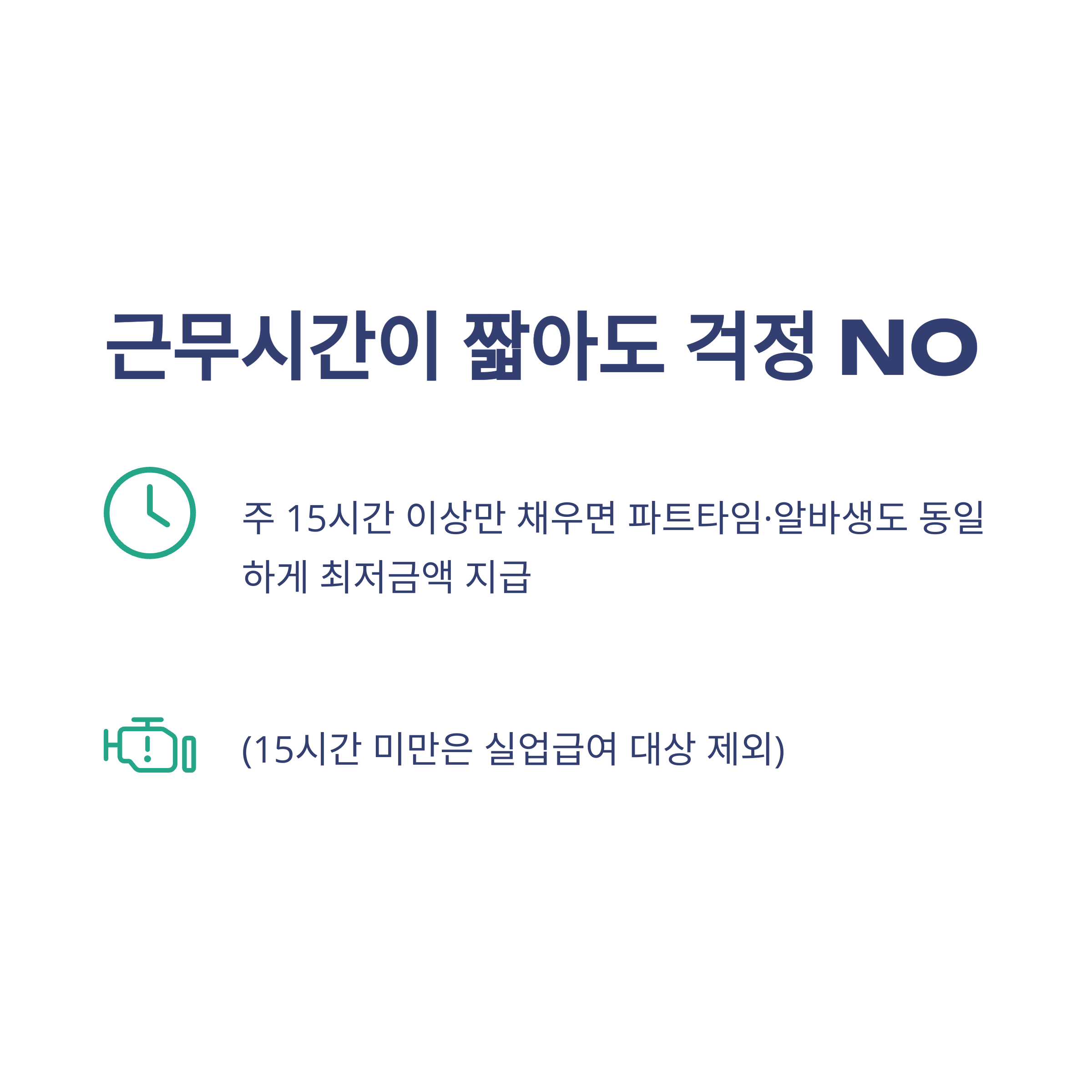 - 근무시간 기준 미달(주 15시간 미만)은 실업급여 대상 제외