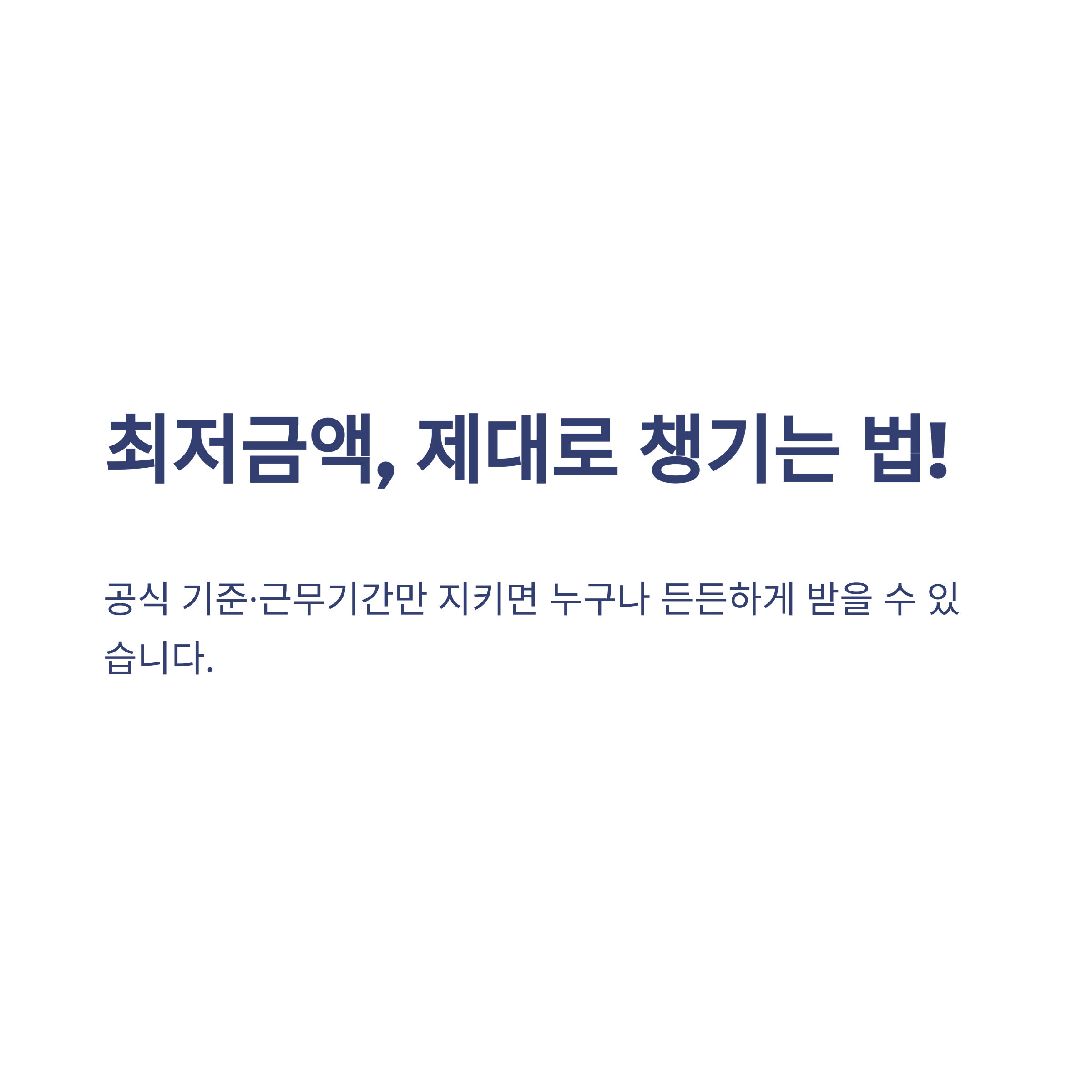 실업급여 최저금액 기준만 정확히 챙기면, 단기근속·아르바이트·저임금 근로자 모두 든든하게 받을 수 있습니다.