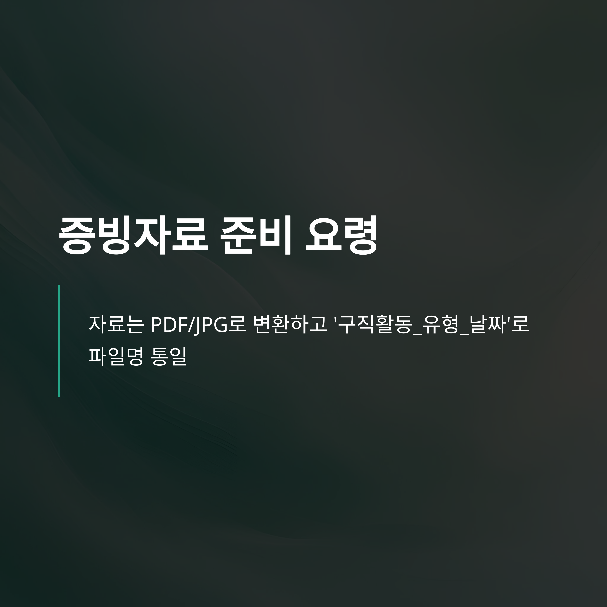 – 활동 유형별(온라인·오프라인) 계획을 균형 있게 작성해야 합니다. - ③ 구직활동 증빙자료 준비 및 첨부