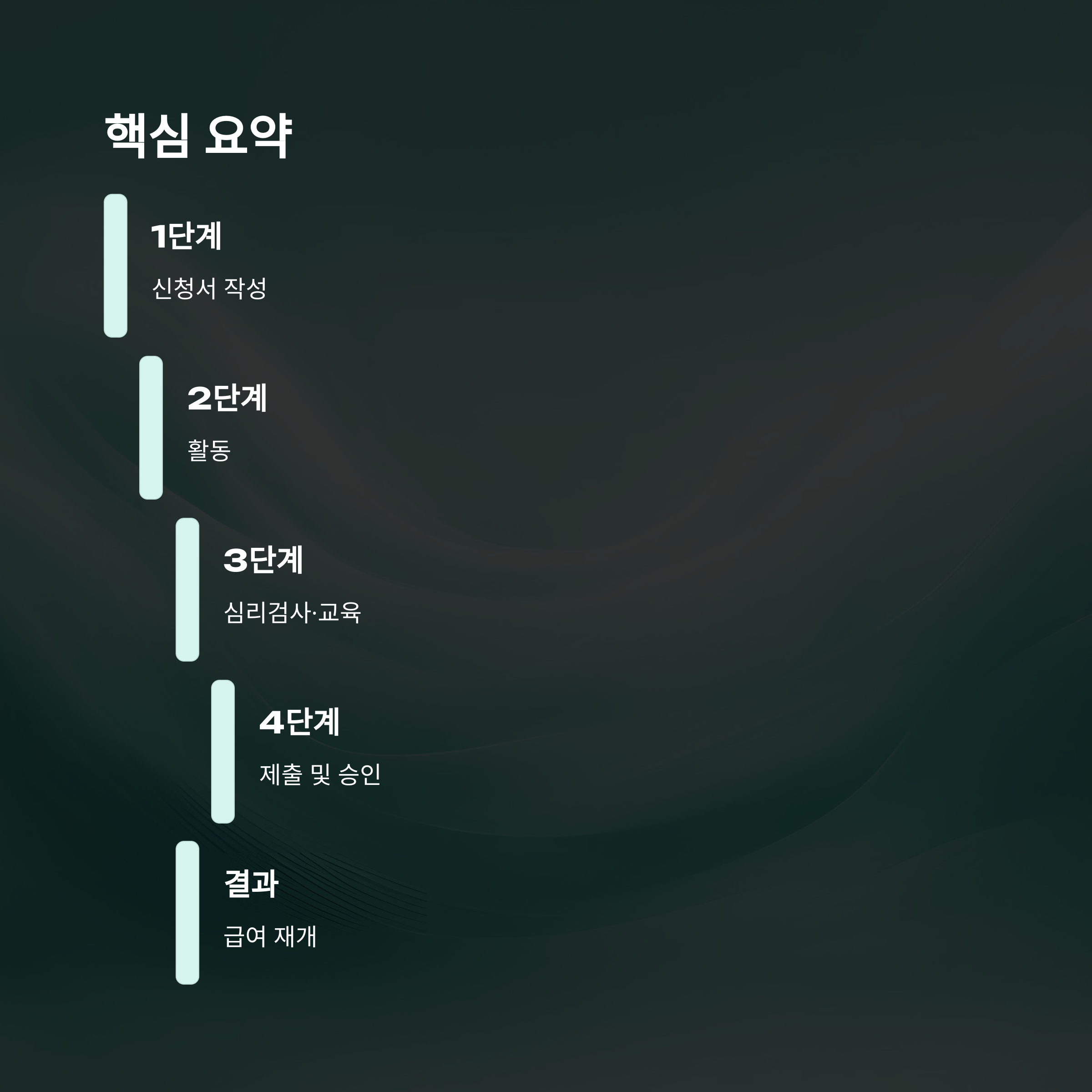 – 미이행 시 정지된 급여를 다시 받으려면 재신청 절차를 거쳐야 합니다. - 고용센터 재방문 요청
