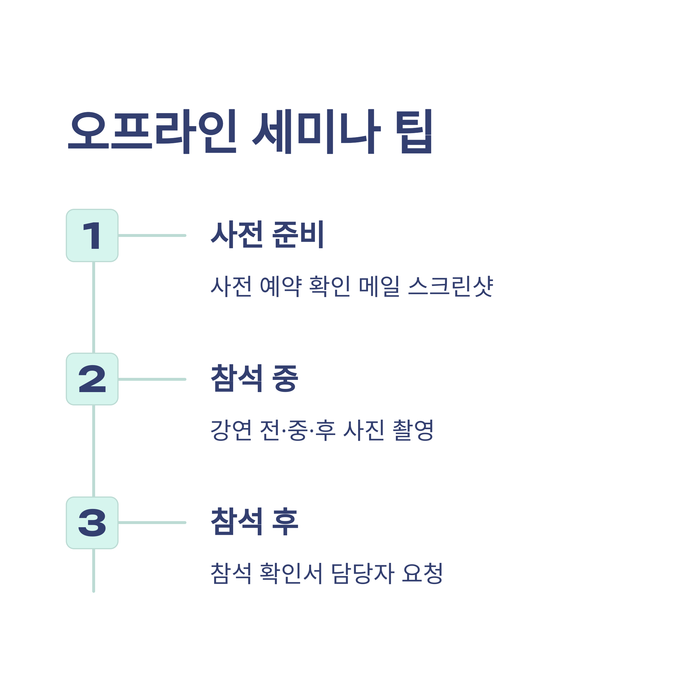 오프라인 세미나는 네트워킹 기회도 제공해주기 때문에, 단순 증빙 이상의 가치를 느낄 수 있습니다. 저는 세미나 전날 미리 주최 기관 홈페이지에서 일정과 장소, 강연자 정보를 숙지했고, 명함과 필기도구를 준비해 갔어요.