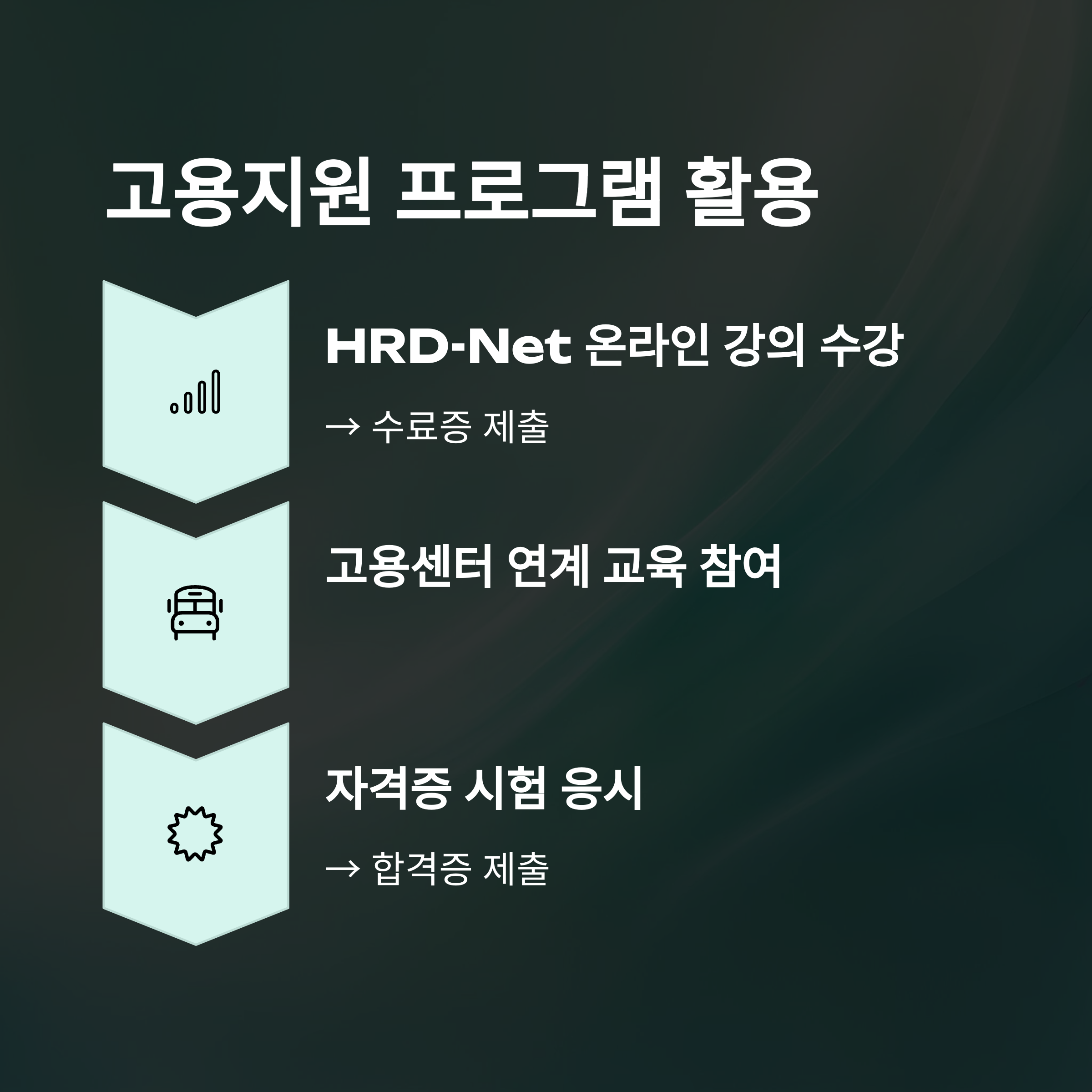 – 지역 고용센터가 지원하는 취업 지원 교육도 참여 가능합니다. - 직무 자격증 취득