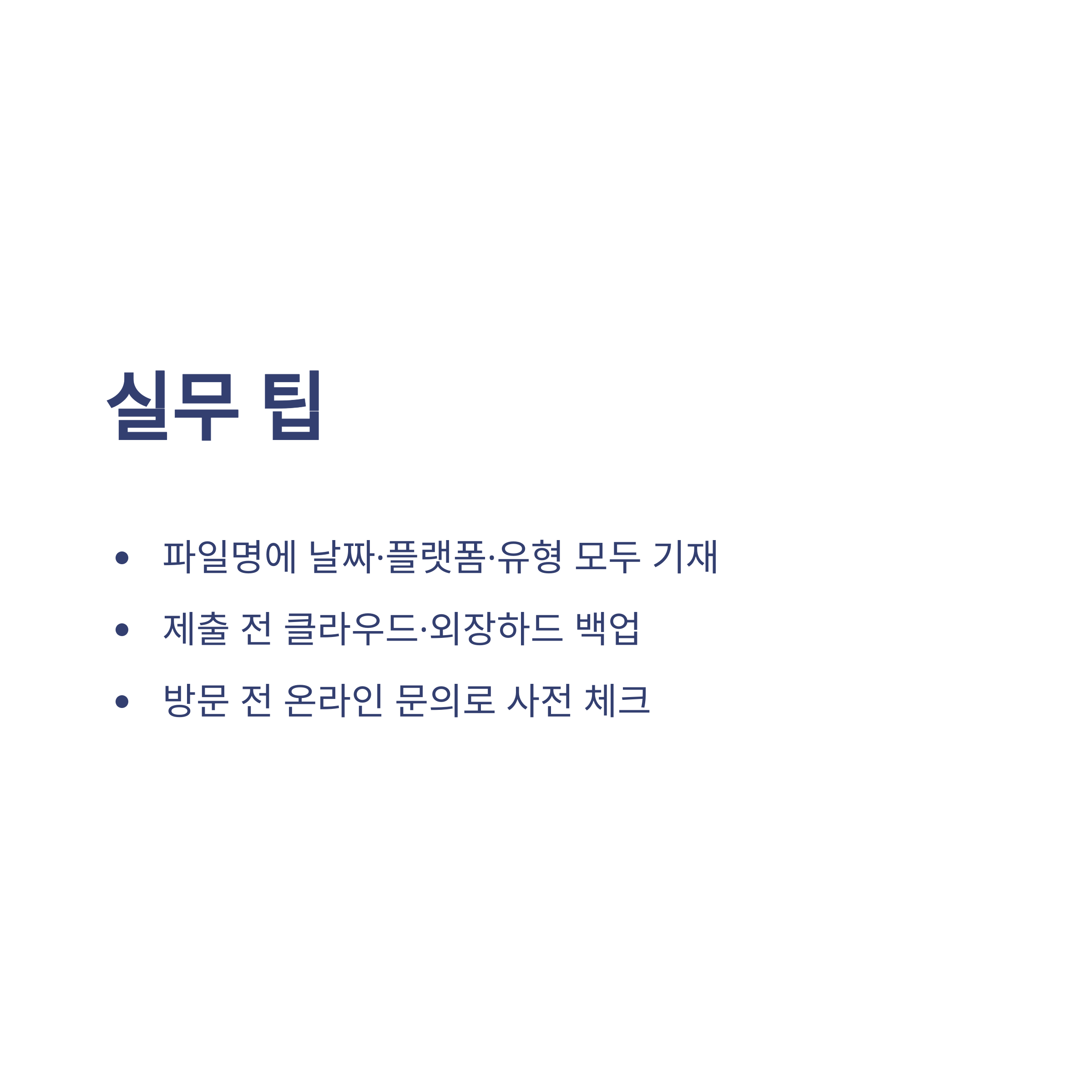 – 제출 서류 품질(스캔 해상도·파일 형식)이 중요합니다.