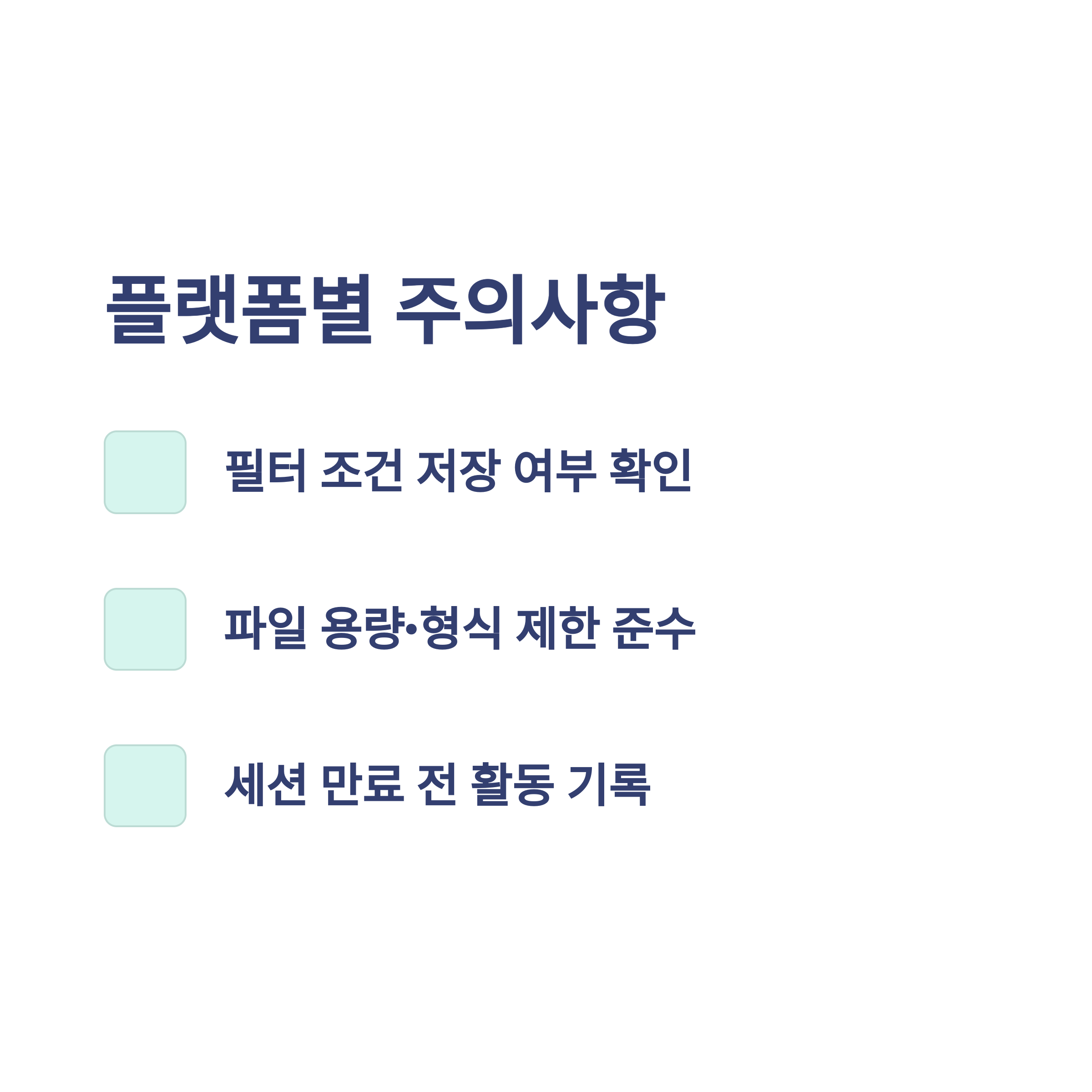 – 날짜·플랫폼·활동유형을 모두 넣어 관리하세요. - 백업 절차