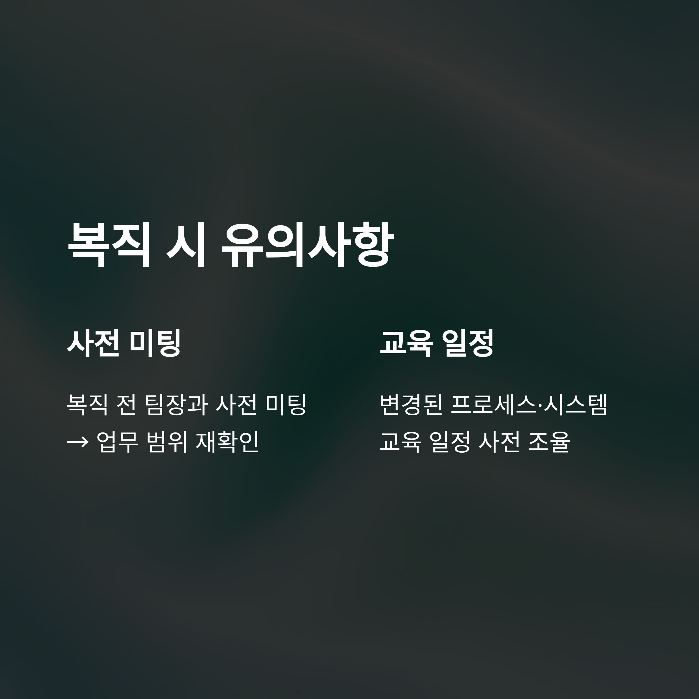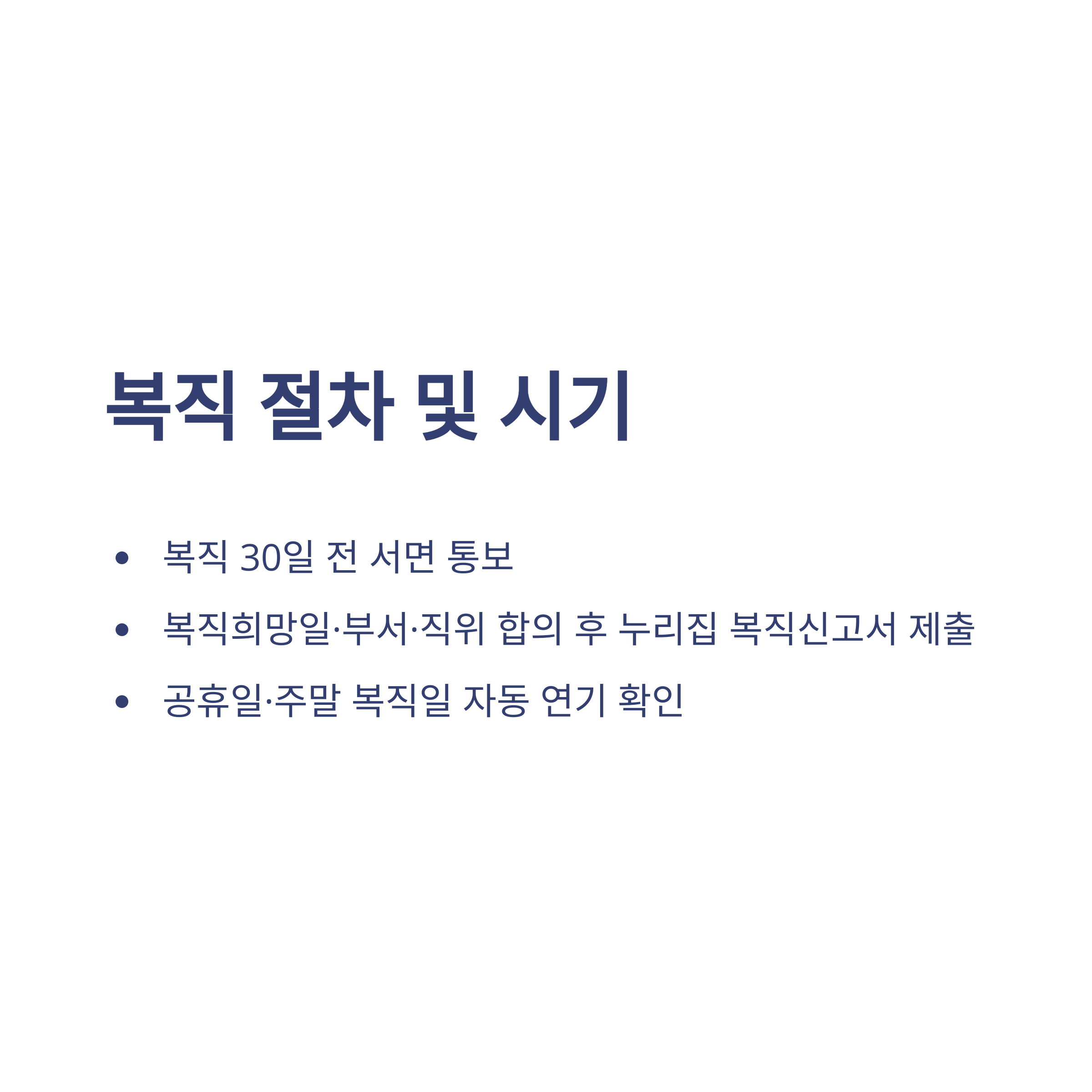 - ✔ 회사 복직 전 업무·부서 조율 미리 진행