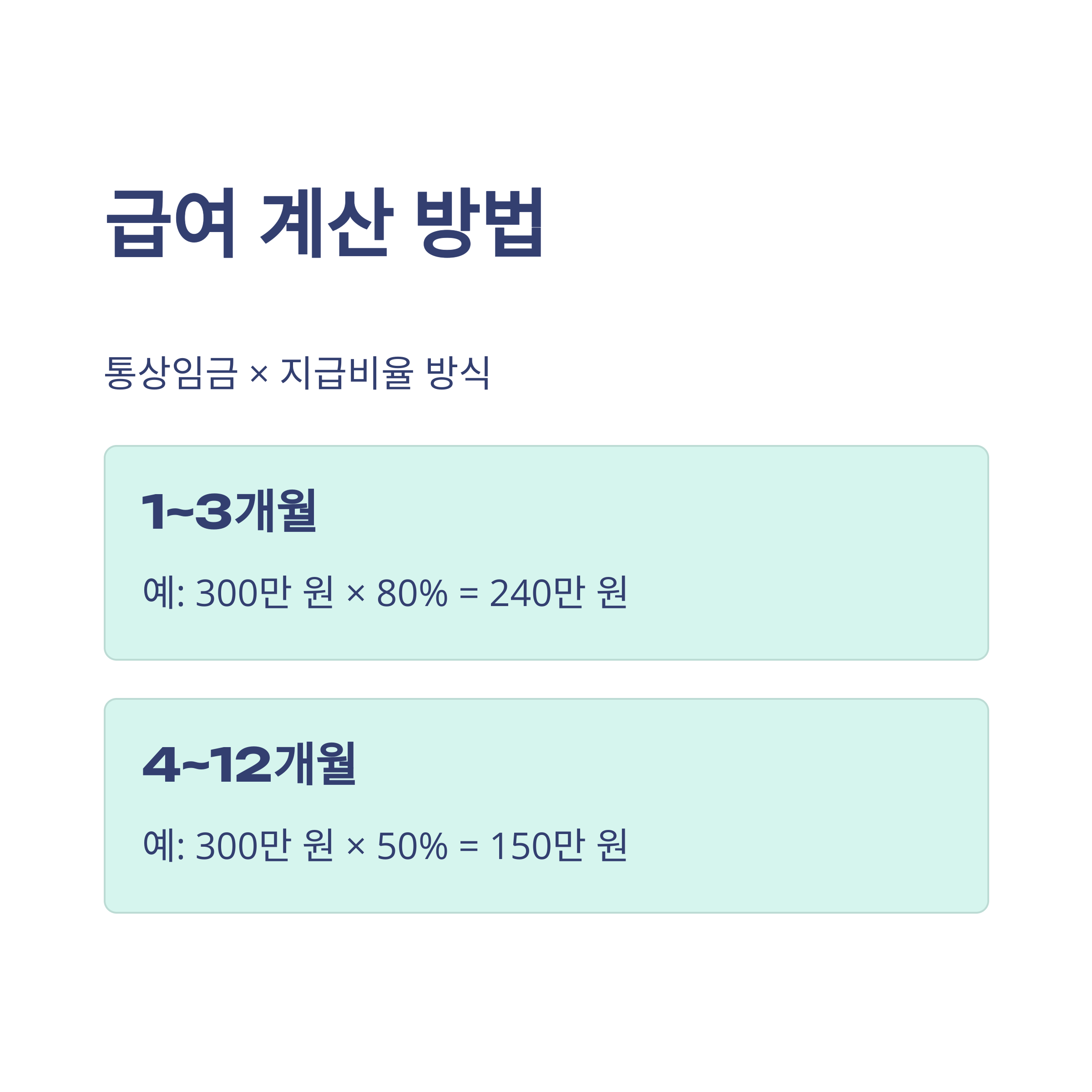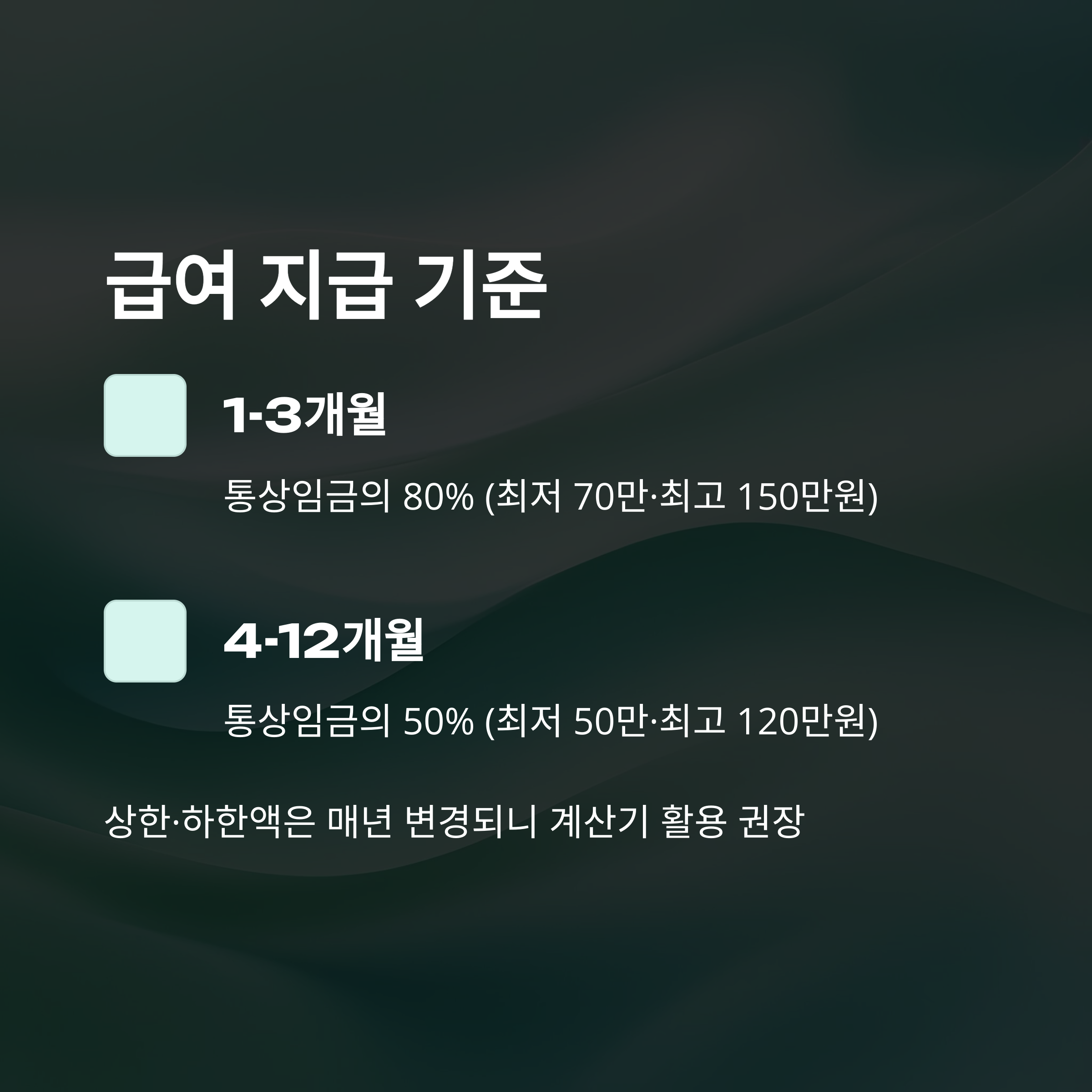 | 1~3개월 | 통상임금의 80% | 최저 70만원 / 최고 150만원 |