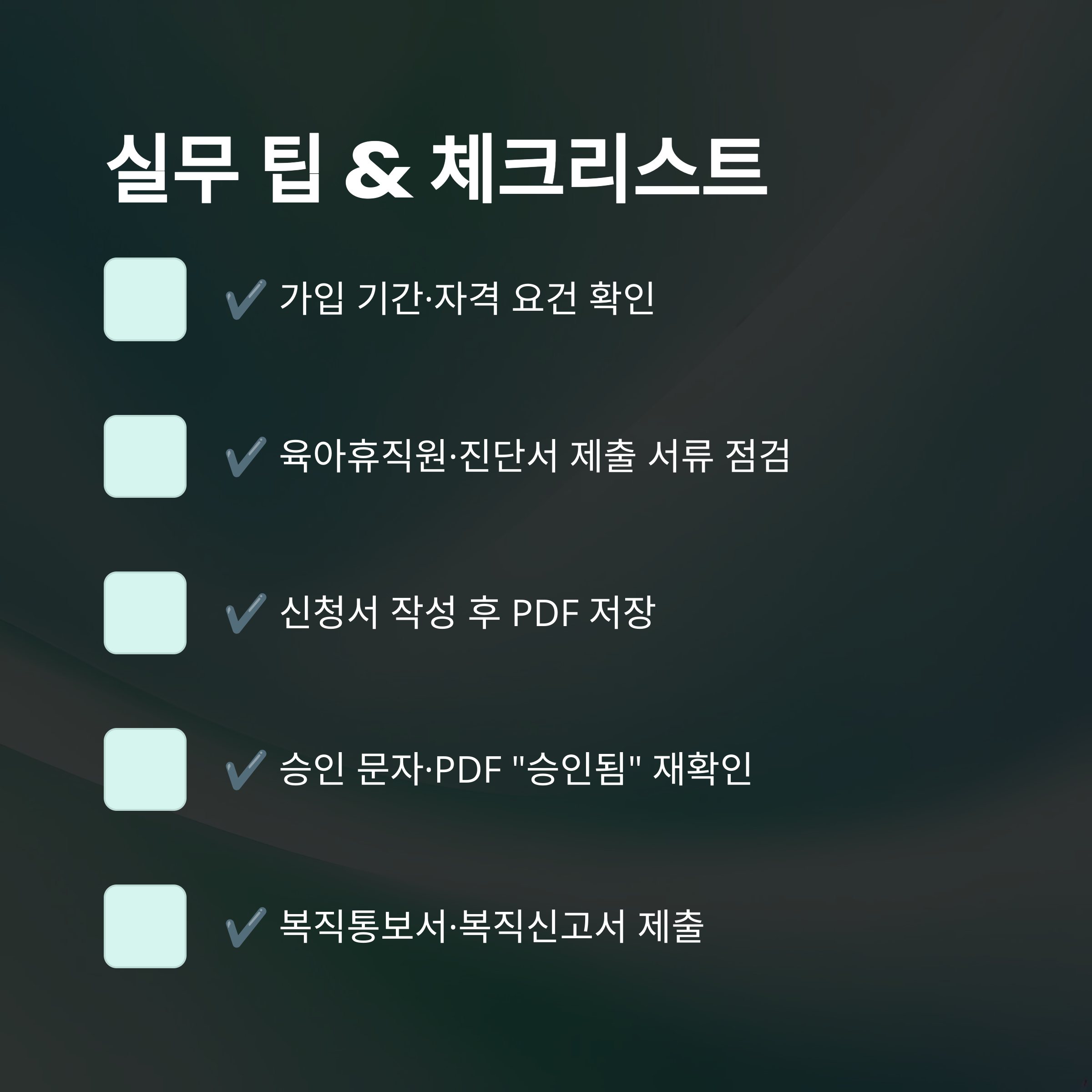 육아휴직급여 신청과 복직 준비 과정에서 자주 발생하는 실수를 방지하기 위한 실무 팁과 체크리스트를 공유합니다. 저는 이 체크리스트를 프린트해 책상 앞에 붙여두고, 하나씩 지워가며 준비했더니 누락 없이 순조롭게 진행할 수 있었어요.