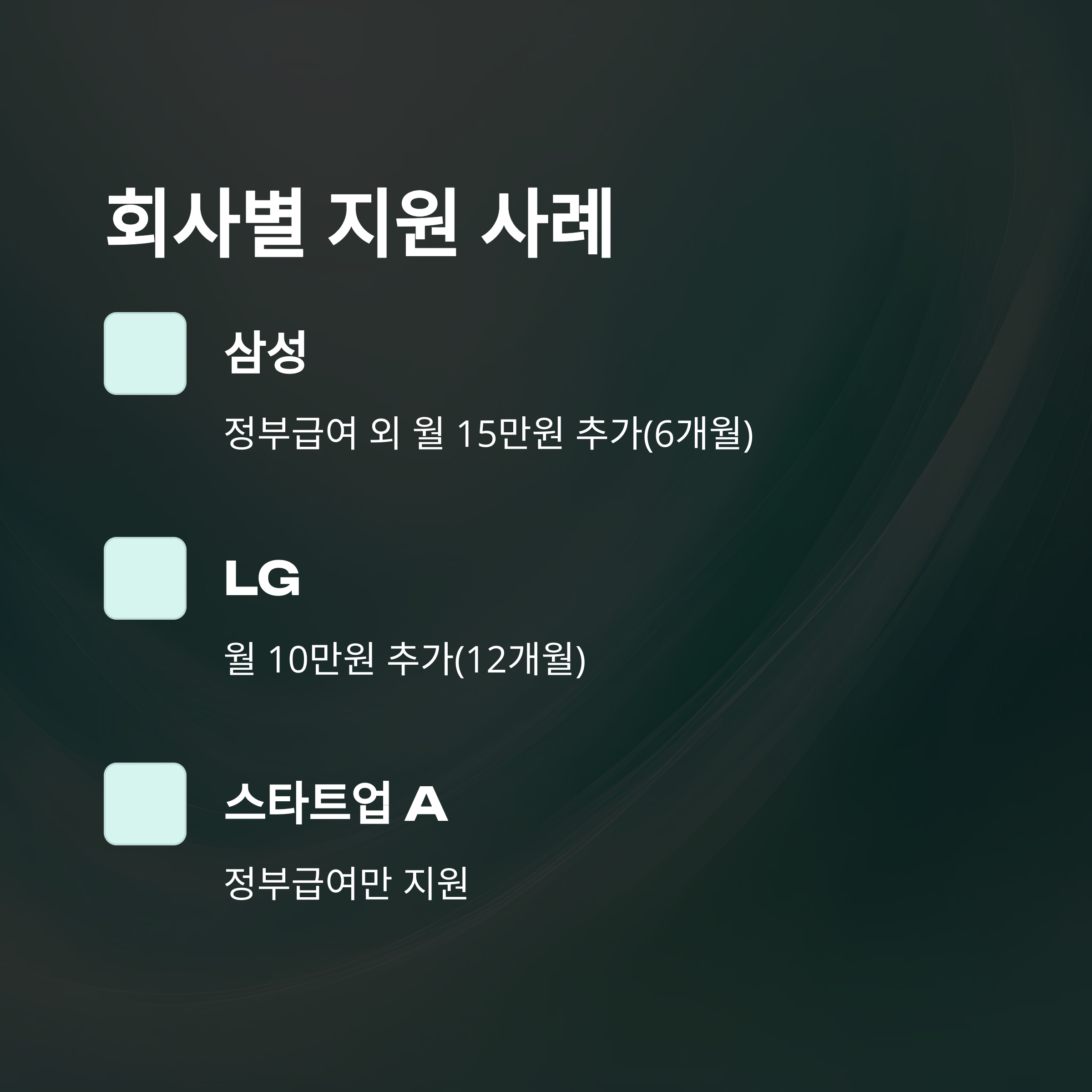 대표적인 대기업 및 중소기업의 육아휴직 지원 사례를 살펴보면, 삼성전자는 첫 6개월 정부급여 80% 외에 추가로 월 15만원을, LG전자는 12개월 동안 매월 10만원을 지급합니다. 반면, 스타트업 A사는 별도 지원 없이 정부급여만 적용되므로, 기업 규모와 재정 여력에 따라 지원 수준이 크게 달라집니다. 기업별 지원 내역은 채용공고나 복리후생 안내 페이지를 통해 비교해 보세요.